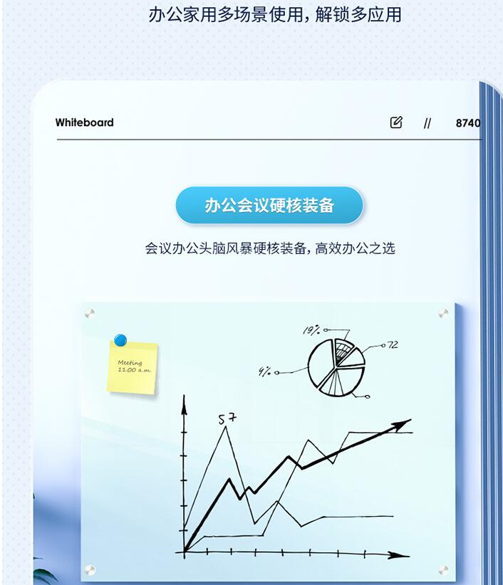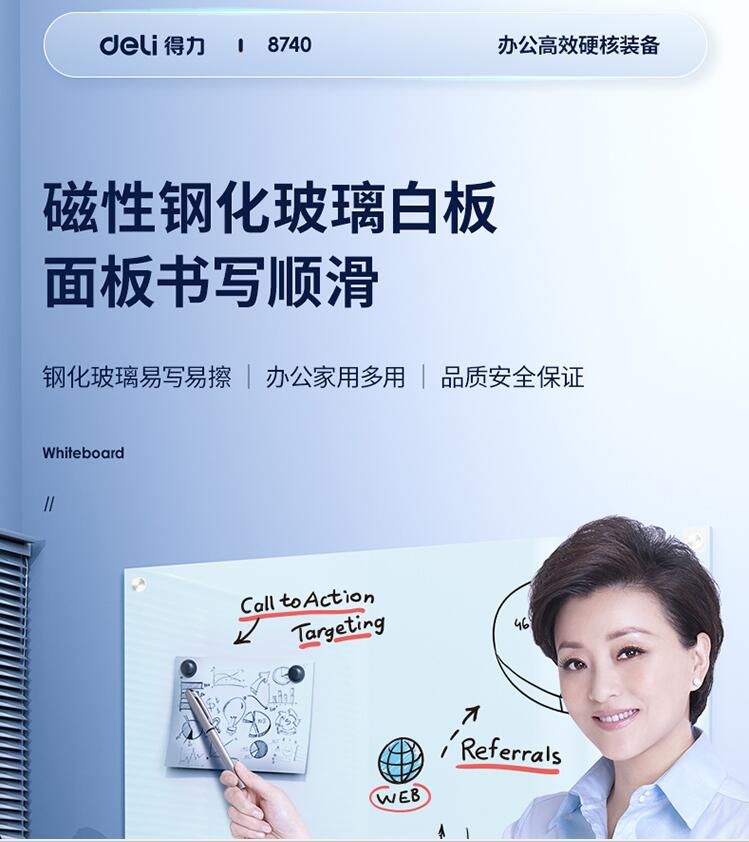 得力白板 8740 150*100cm磁性鋼化懸掛式玻璃白板 單位:塊
