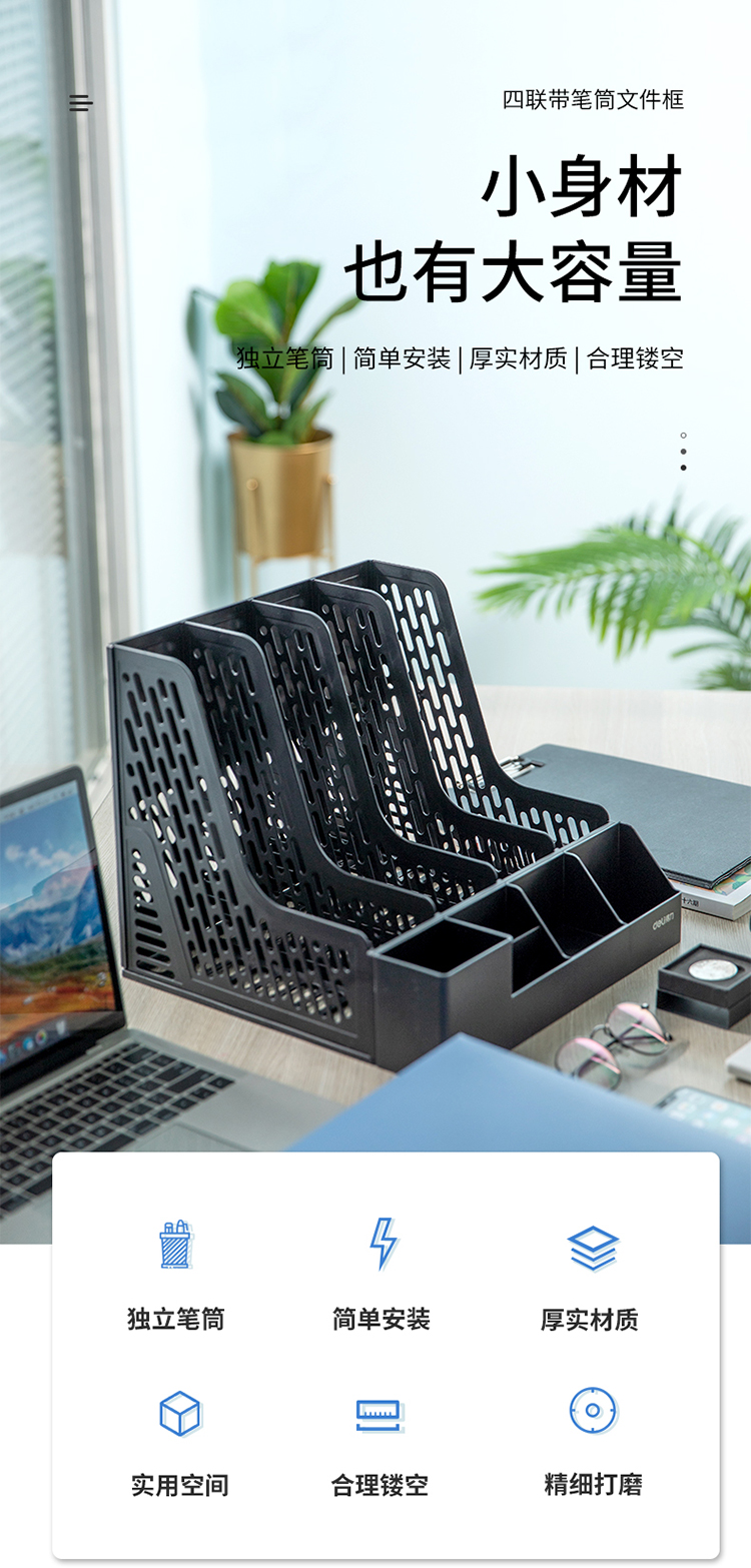 得力資料筐 78981 四聯(lián)帶筆筒文件框多功能資料筐 黑色 單位:個