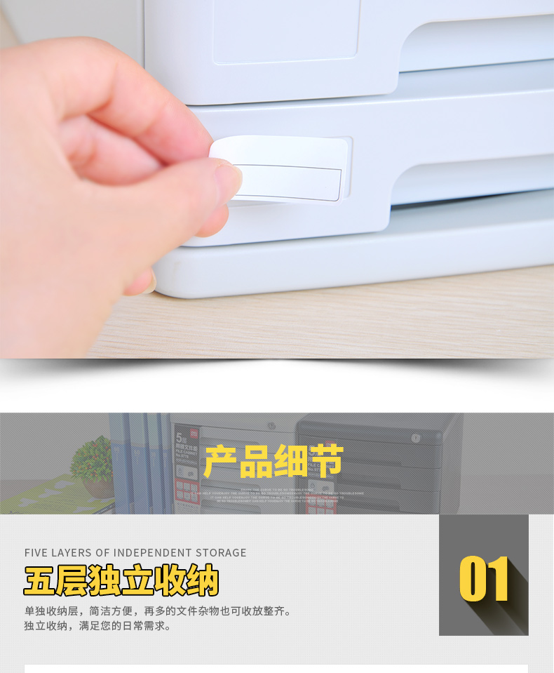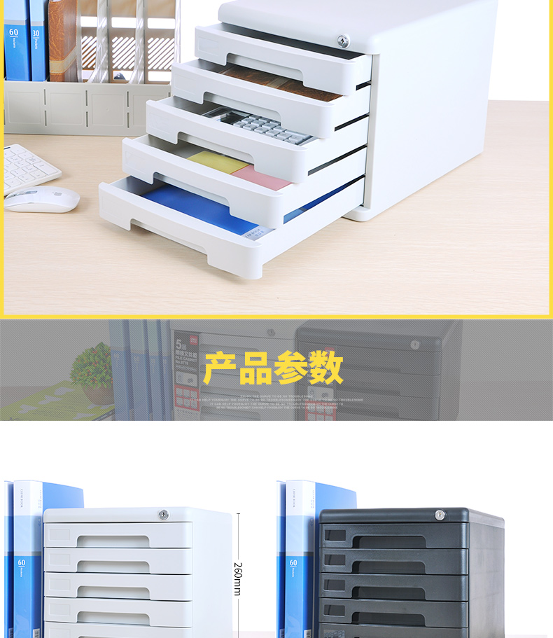 得力文件柜 9778 桌面資料整理文件柜5層帶鎖 灰色 單位:個(gè)