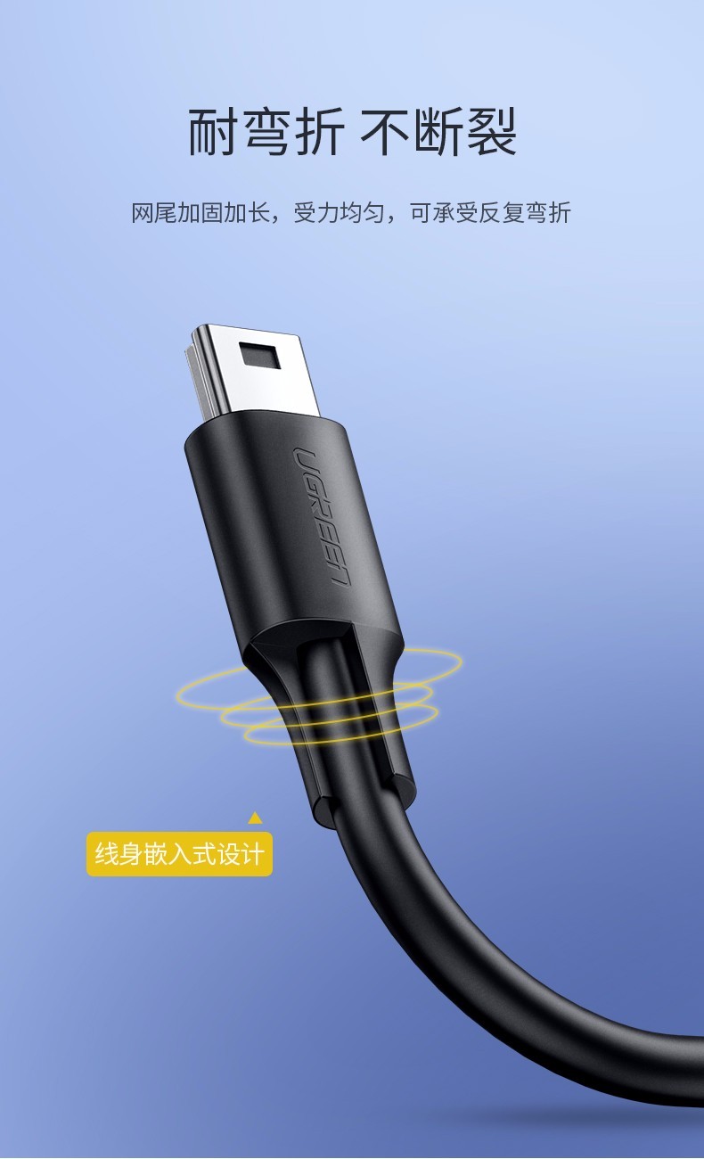 綠聯(lián) US132 USB2.0轉(zhuǎn)Mini USB數(shù)據(jù)線 T型口充電連接線 2米 黑色 單位:根