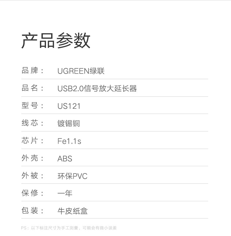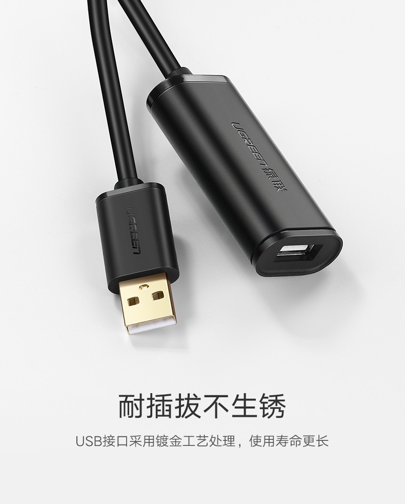 綠聯(lián) US121 USB2.0延長(zhǎng)線公對(duì)母數(shù)據(jù)線 30米 黑色 單位:根
