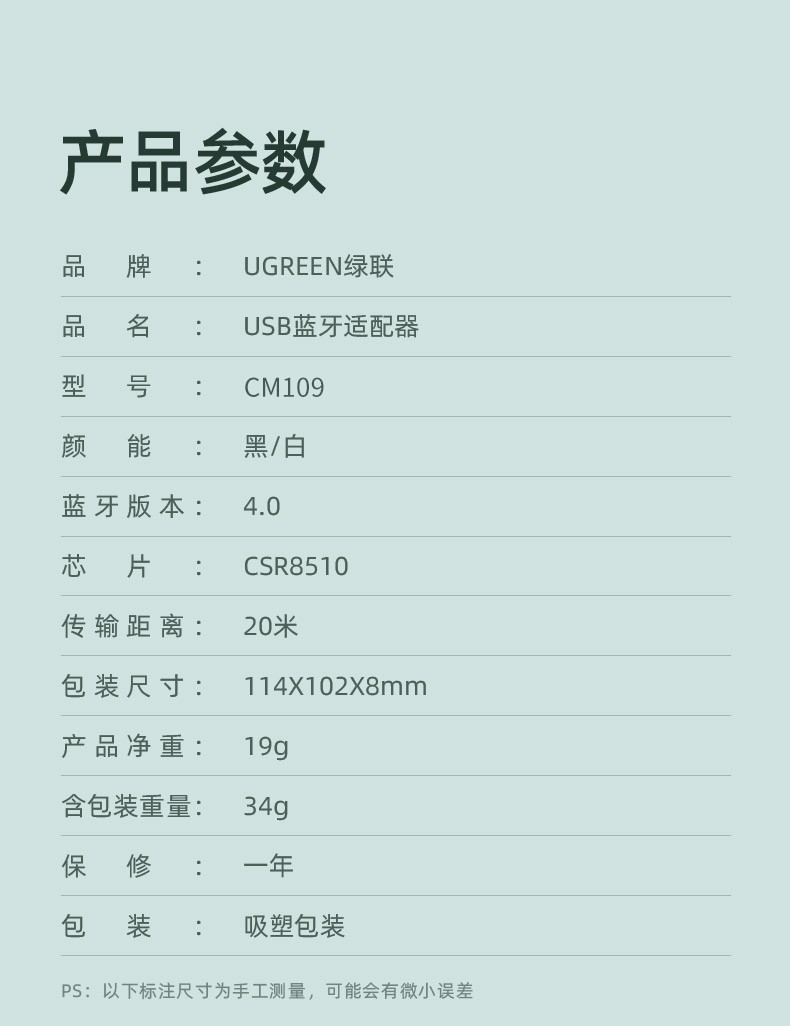 綠聯(lián) CM109 USB藍牙適配器4.0版接收器 白色 單位:個