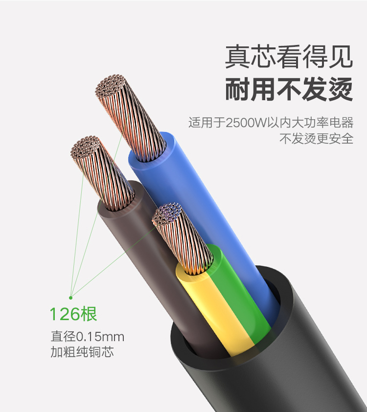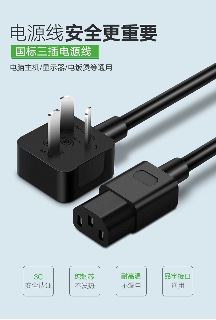 綠聯(lián) CD133 電腦主機電源線國標三孔品字尾通用 5米 黑色 單位:個