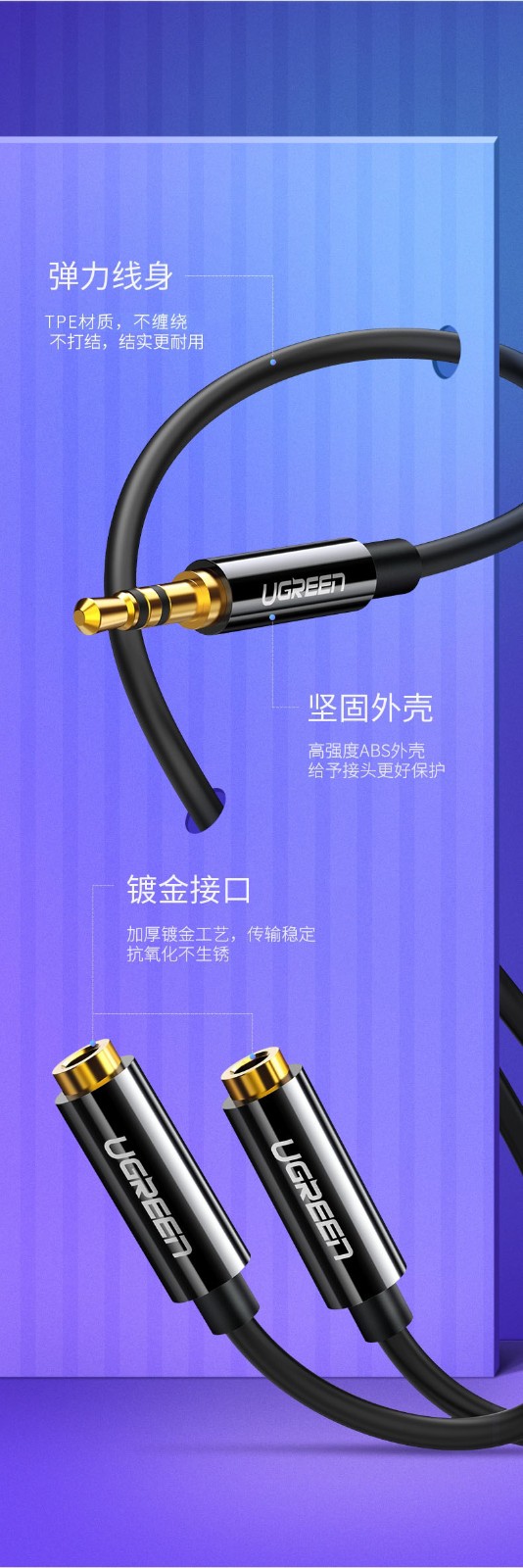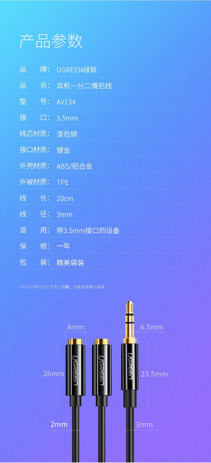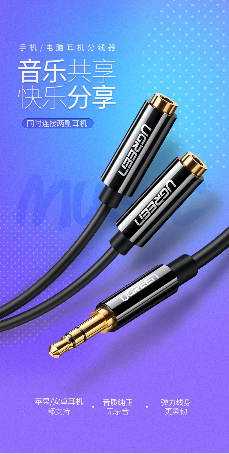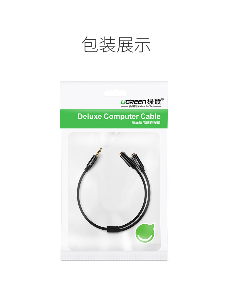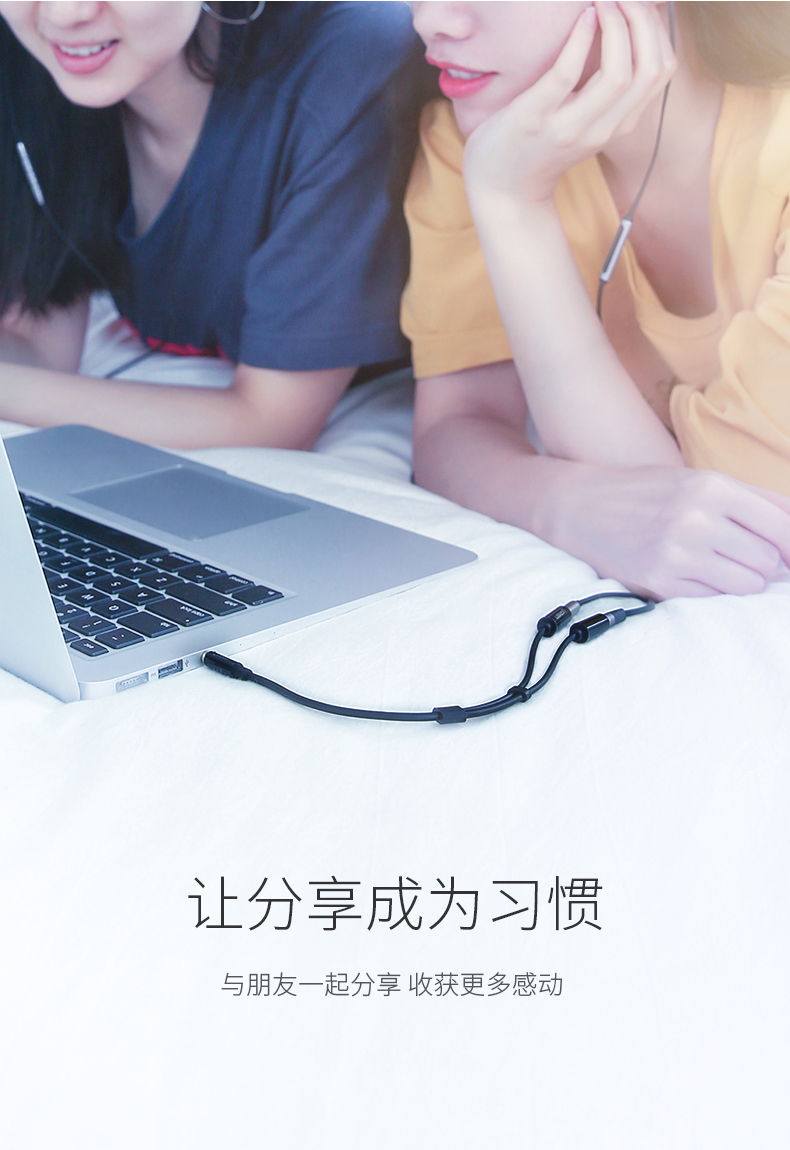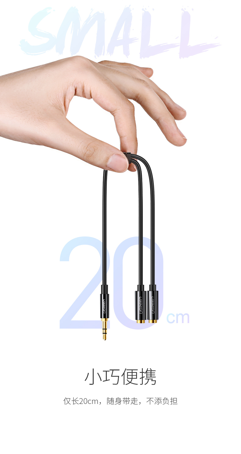 綠聯(lián) AV134 3.5mm一分二音頻線1分2公對母情侶耳機線AUX分線器轉接頭 白色 0.25米 單位:根
