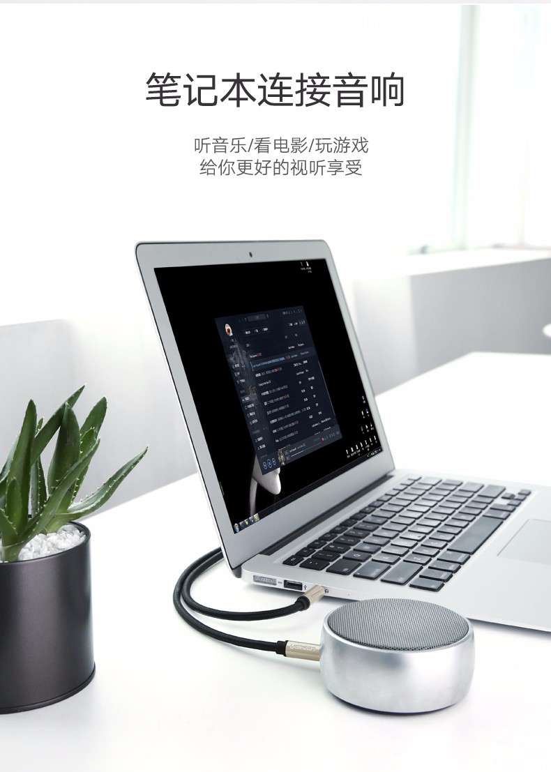 綠聯(lián) AV125 鍍銀AUX車用音頻線 3.5mm 公對公車載連接轉(zhuǎn)換線 專業(yè)發(fā)燒級AUX音頻線 2米 黑色 單位:根