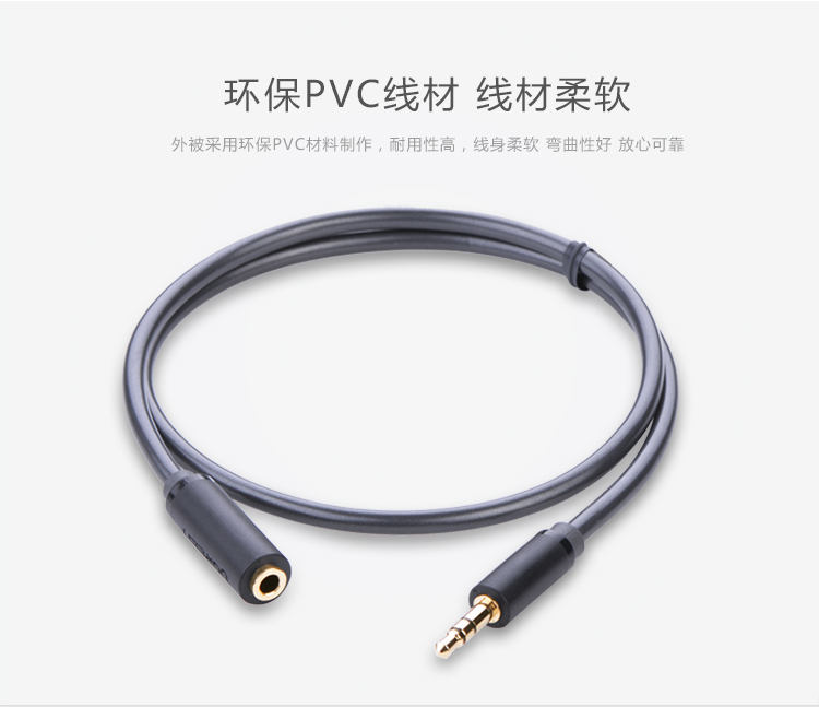 綠聯(lián) AV124 3.5mm音頻線公對(duì)母 手機(jī)平板筆記本電腦車載AUX音響箱加長連接線 1米 灰色 單位:根