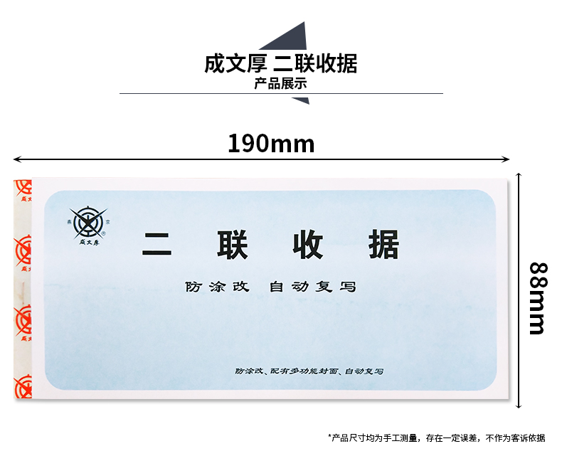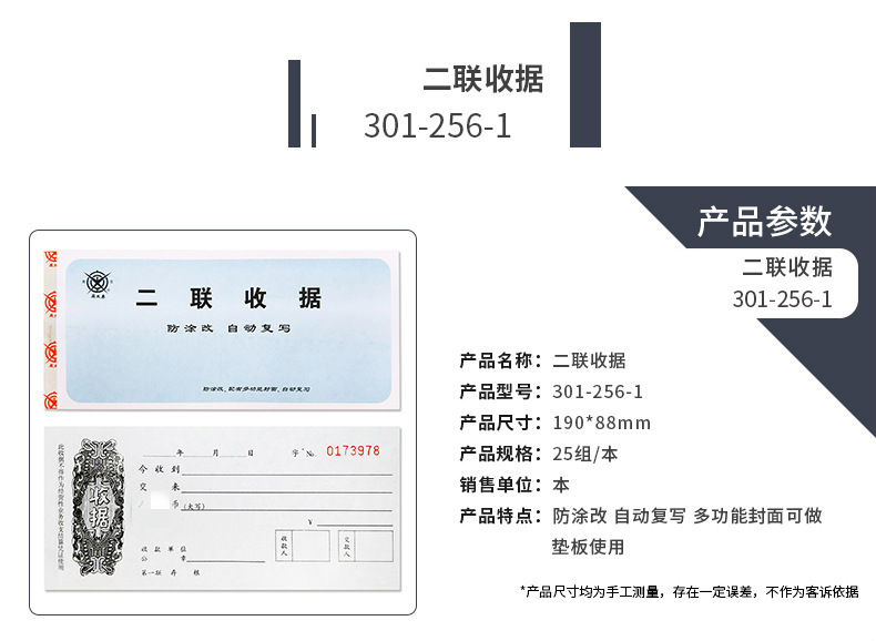 成文厚二聯(lián)收據(jù)本 256-1 二聯(lián)無碳復(fù)寫收據(jù)防涂改 單位:本