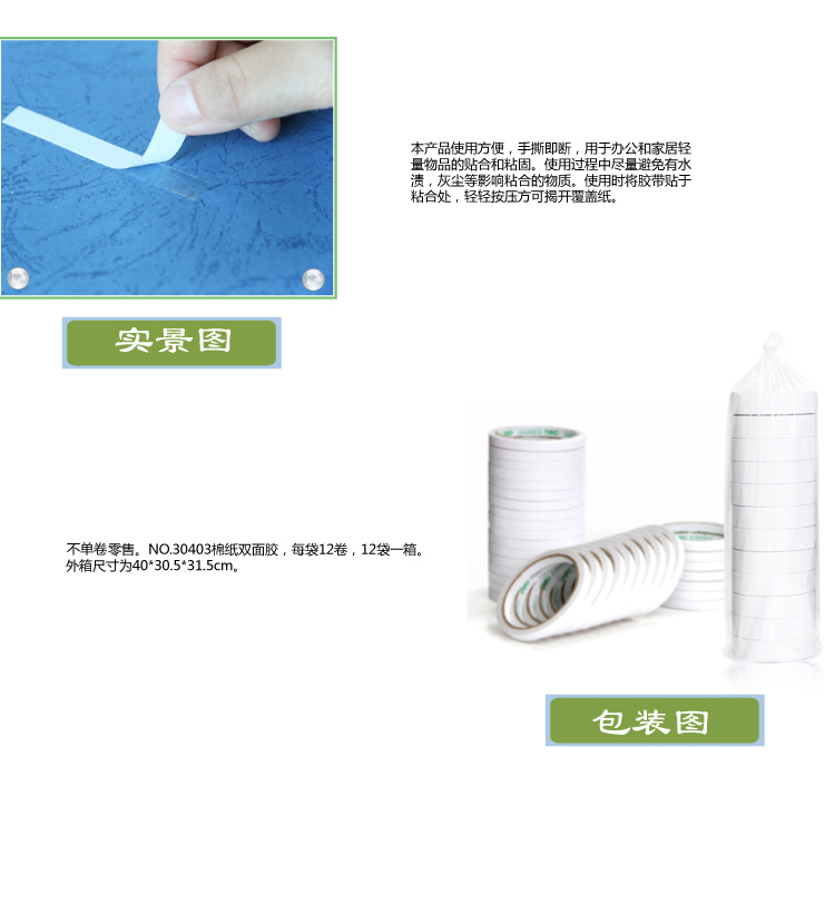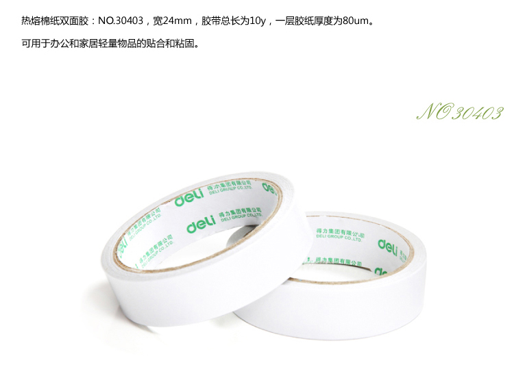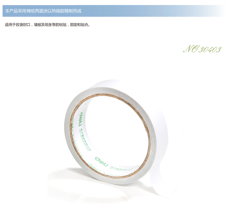 得力雙面膠帶 30403 (24mm*10y) 棉紙兩面膠帶高粘度 單位:卷