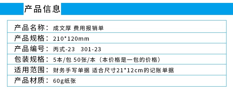 成文厚費用報銷單 丙式-23 單位:5本/包