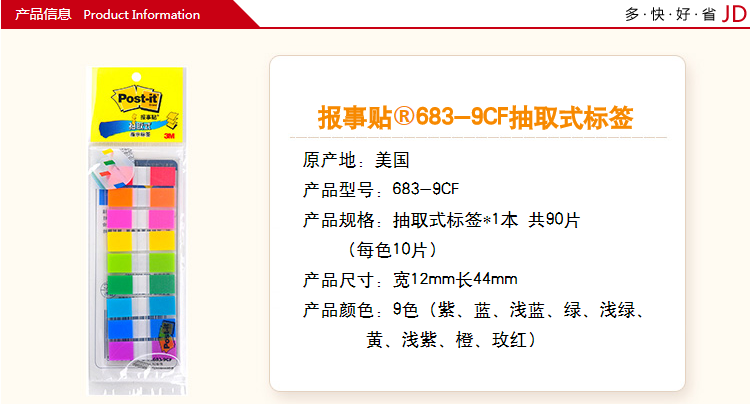 3M 683-9CF 彩色指示標(biāo)簽 單位:包