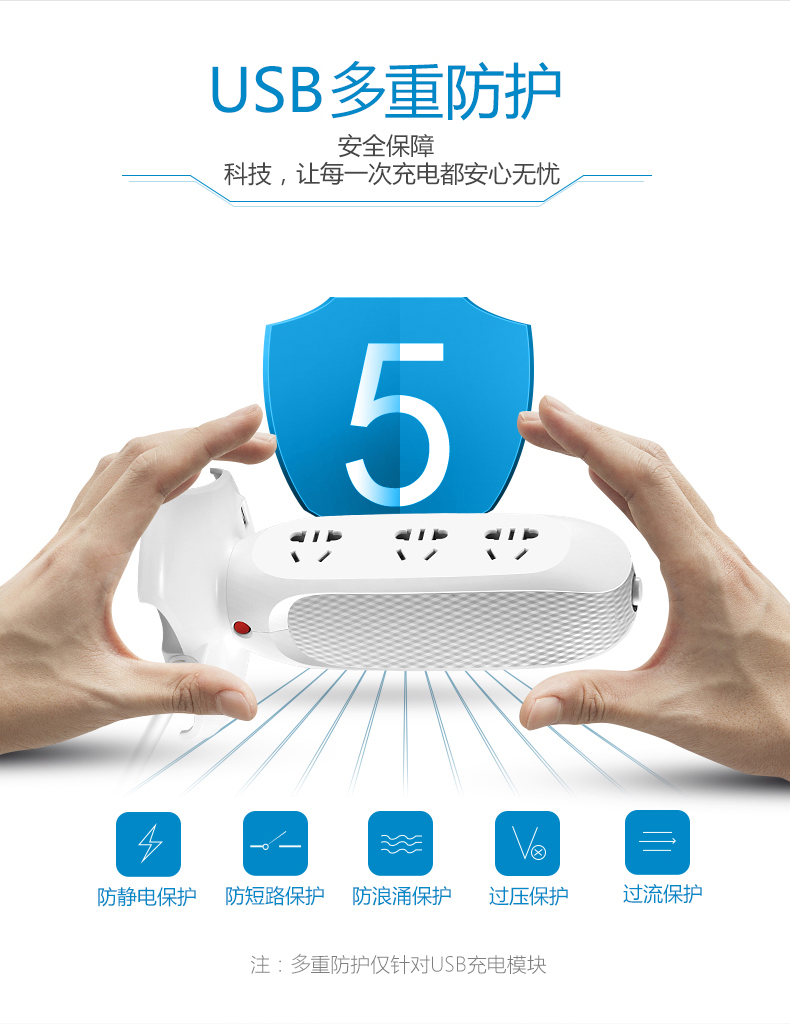 公牛插座 V106U 1.8米6位帶usb塔式多功能立體辦公插座 單位:個(gè)