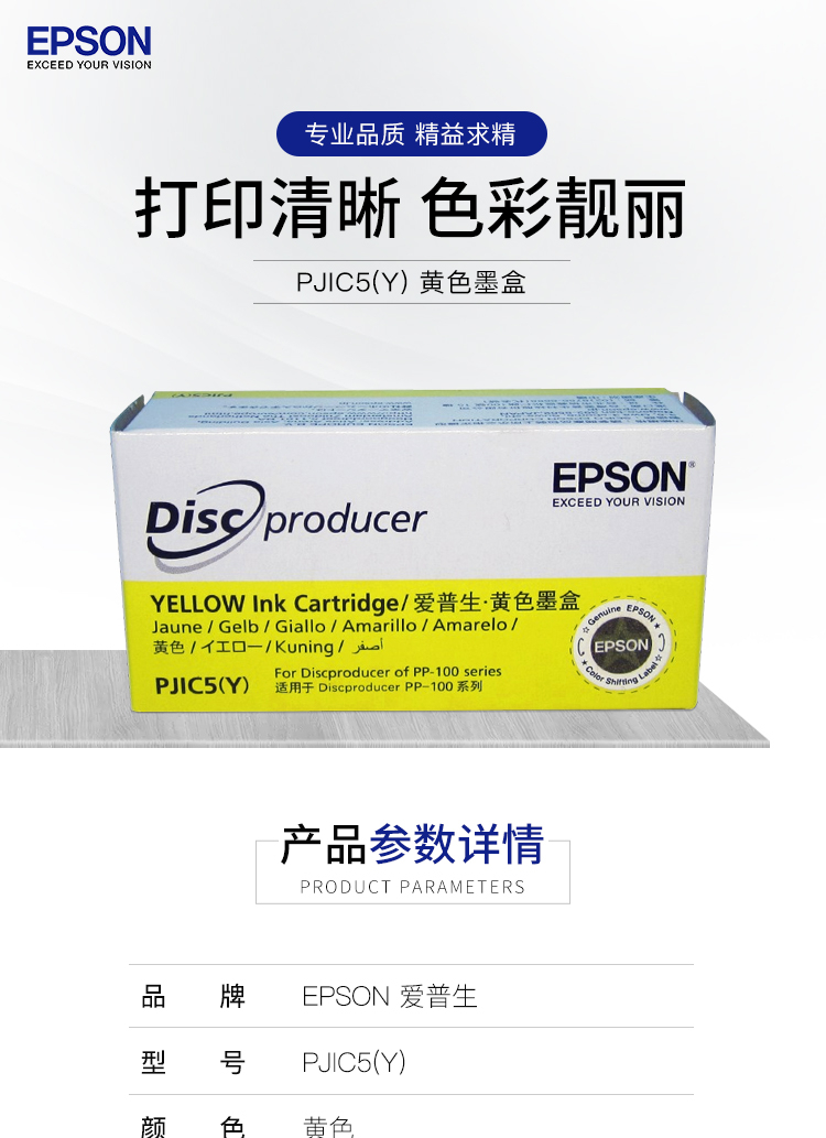 愛普生墨盒PJIC5 黃色墨盒 (適用PP-100III/100N/50II系列光盤印刷刻錄機(jī)) 單位:支