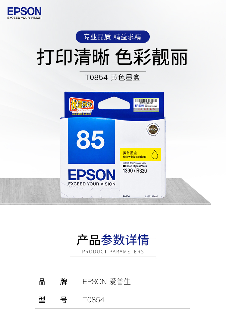 愛普生墨盒 T0854 黃色墨盒 適用:PHOTO 1390 R330 單位:支