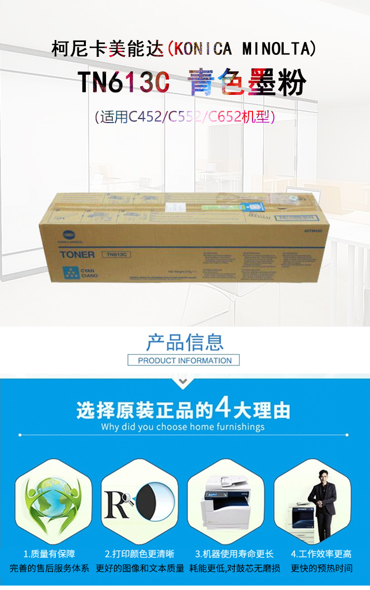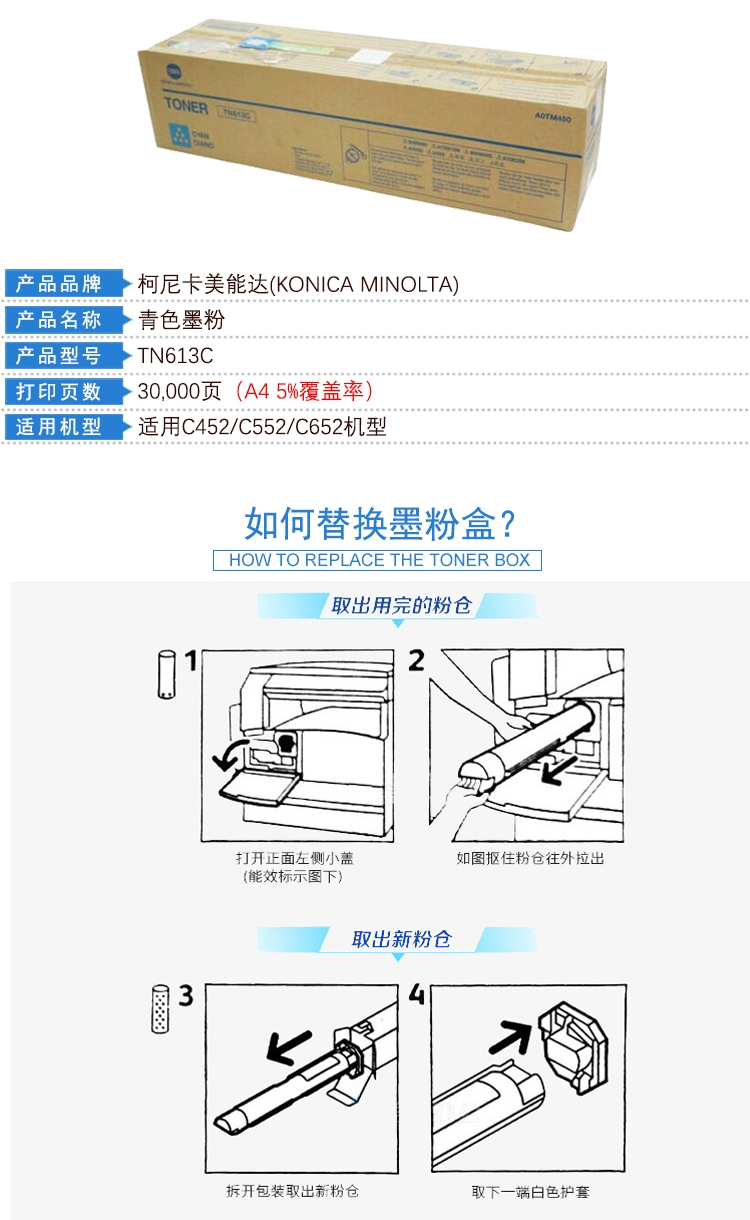 柯尼卡美能達(dá) TN613C 青色墨粉 適用C452/C552/C652 單位:支