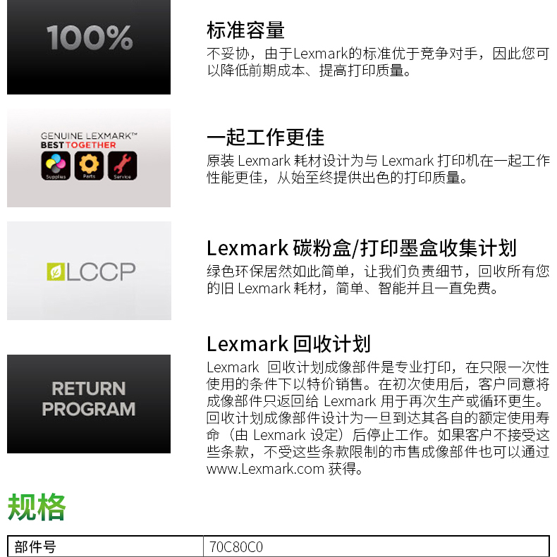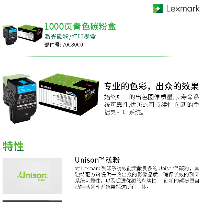 利盟墨粉 70C80C0 藍色 適用CS/310/410/510dn機型(約1000頁) 單位:支
