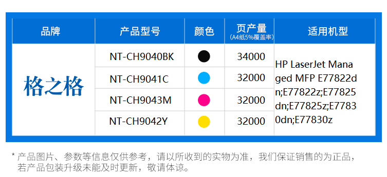格之格 NT-CH9041C 青色粉盒 適用惠普 MFP E77822dn E77822z E77825dn E77830復(fù)印機(jī)耗材