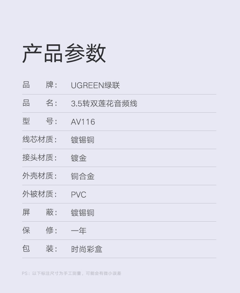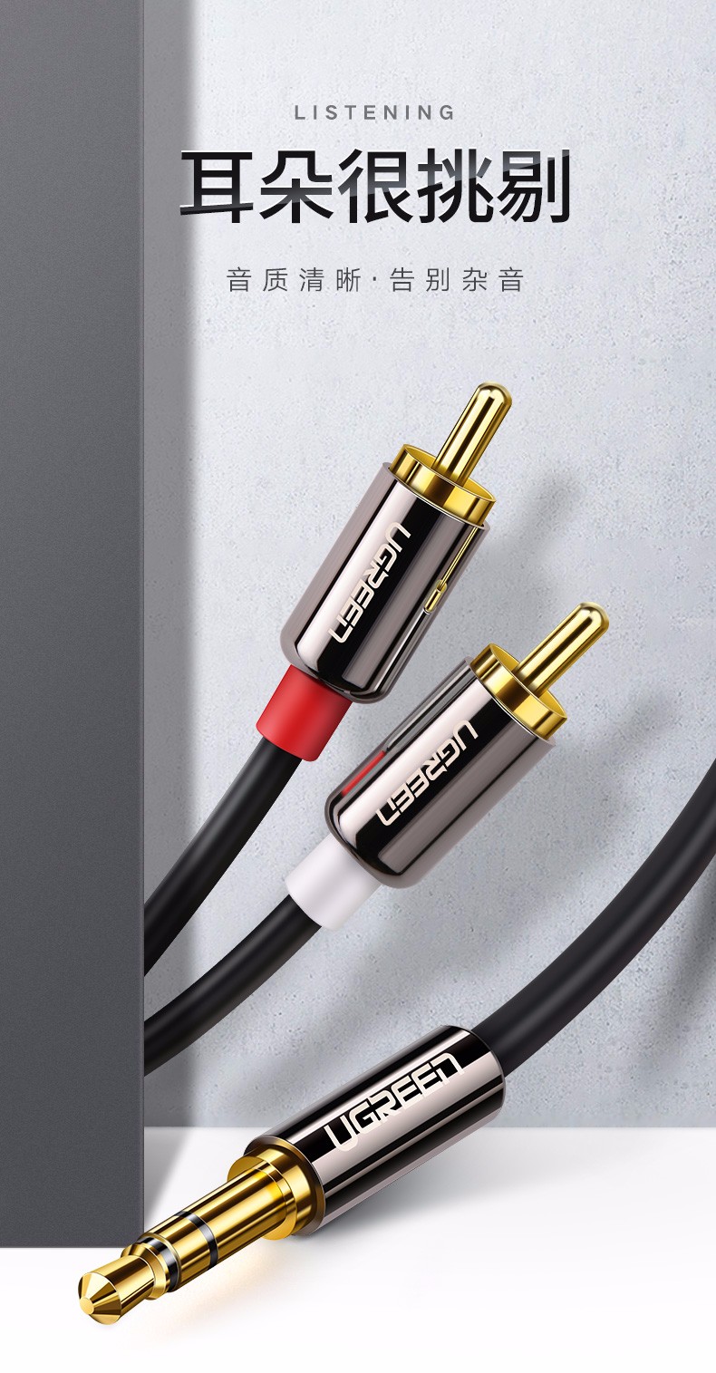 綠聯(lián) AV116 3.5mm音頻線一分二 3.5轉(zhuǎn)雙蓮花頭2RCA紅白公對公連接線 5米 黑色 單位:根