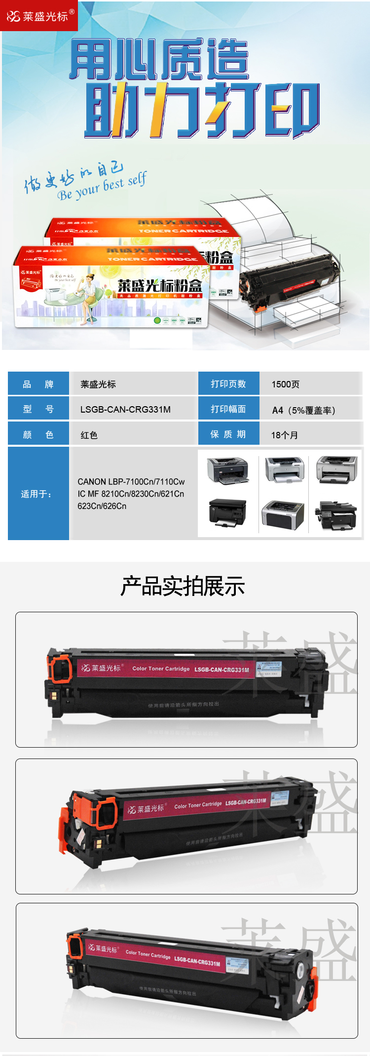 萊盛光標(biāo) LSGB-CAN-CRG331M 紅色硒鼓 適用:CANON LBP-7100Cn/7110Cw IC MF 單位:支
