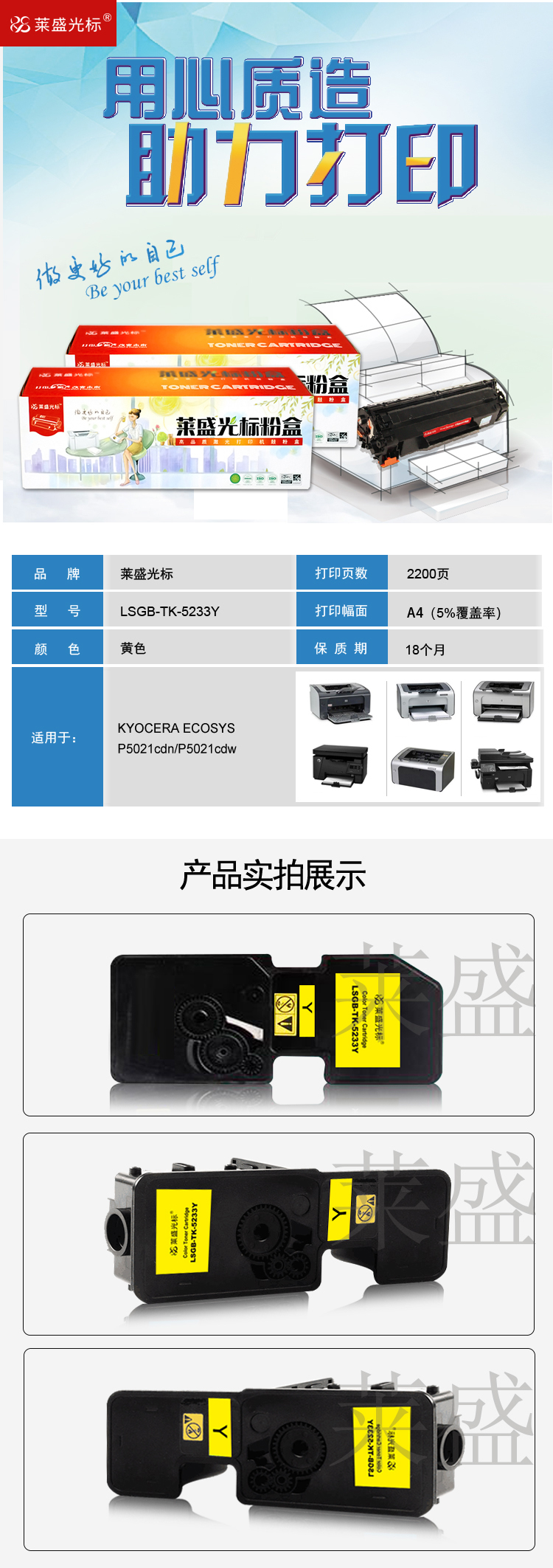 萊盛光標(biāo) LSGB-TK-5233Y 黃色硒鼓 適用:KYOCERA ECOSYS P5021cdn/P5021cdw 單位:支