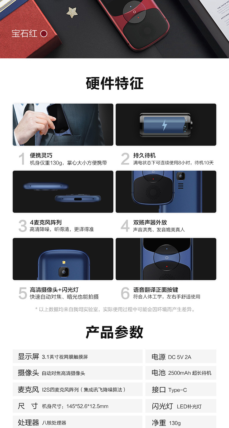 科大訊飛翻譯機(jī)3.0 離線翻譯棒方言翻譯筆出國旅游翻譯神器 單位:個