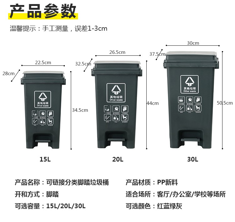 ABEPC 30L腳踩 藍(lán)色 可回收垃圾桶 物業(yè)環(huán)衛(wèi)垃圾分類商用帶蓋分類垃圾桶果皮箱 單個裝