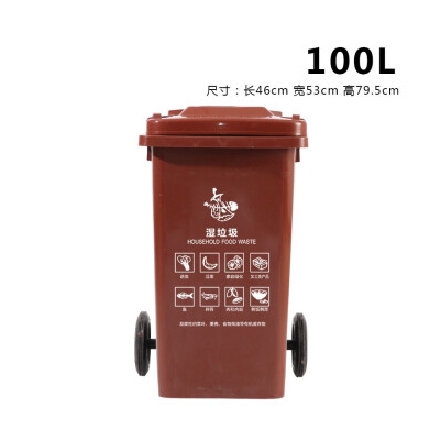 ABEPC 100L帶輪 咖啡色 濕垃圾桶 物業(yè)環(huán)衛(wèi)垃圾分類商用帶蓋分類垃圾桶果皮箱 單個(gè)裝