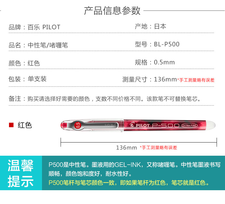 百樂 BL-P500 0.5MM 簽字筆 黑色 單支裝