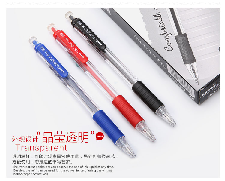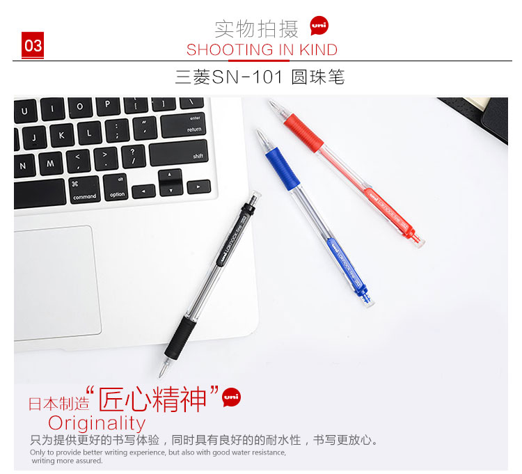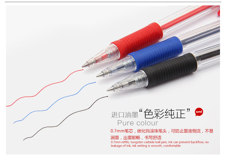三菱 SN-101 0.7mm按動(dòng)圓珠筆中油筆順滑原子筆 藍(lán)色 12支/盒