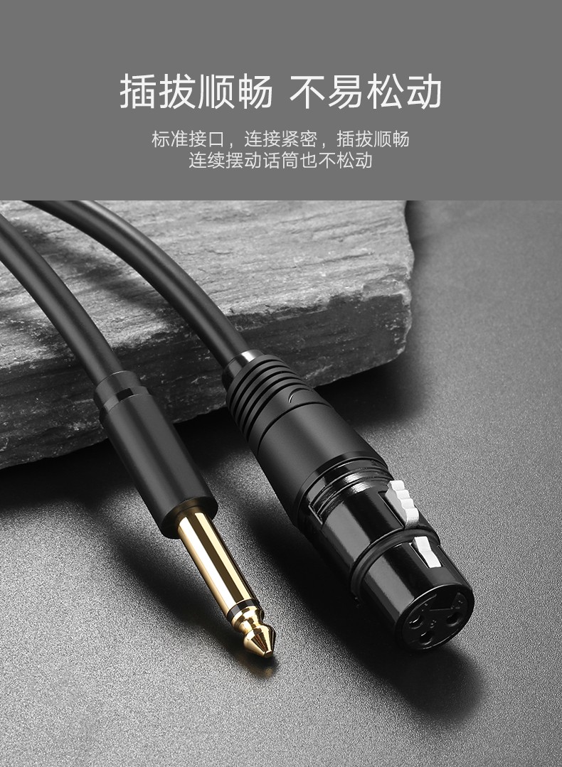 綠聯 AV131 6.5mm轉卡農公對母話筒音頻線 6.35卡儂口XLR平衡線 麥克風調音臺音響箱功放連接線 5米 黑色 單位:根