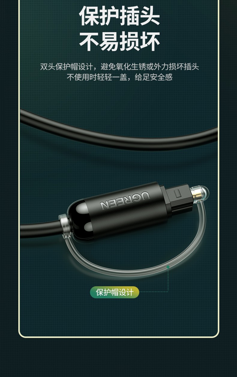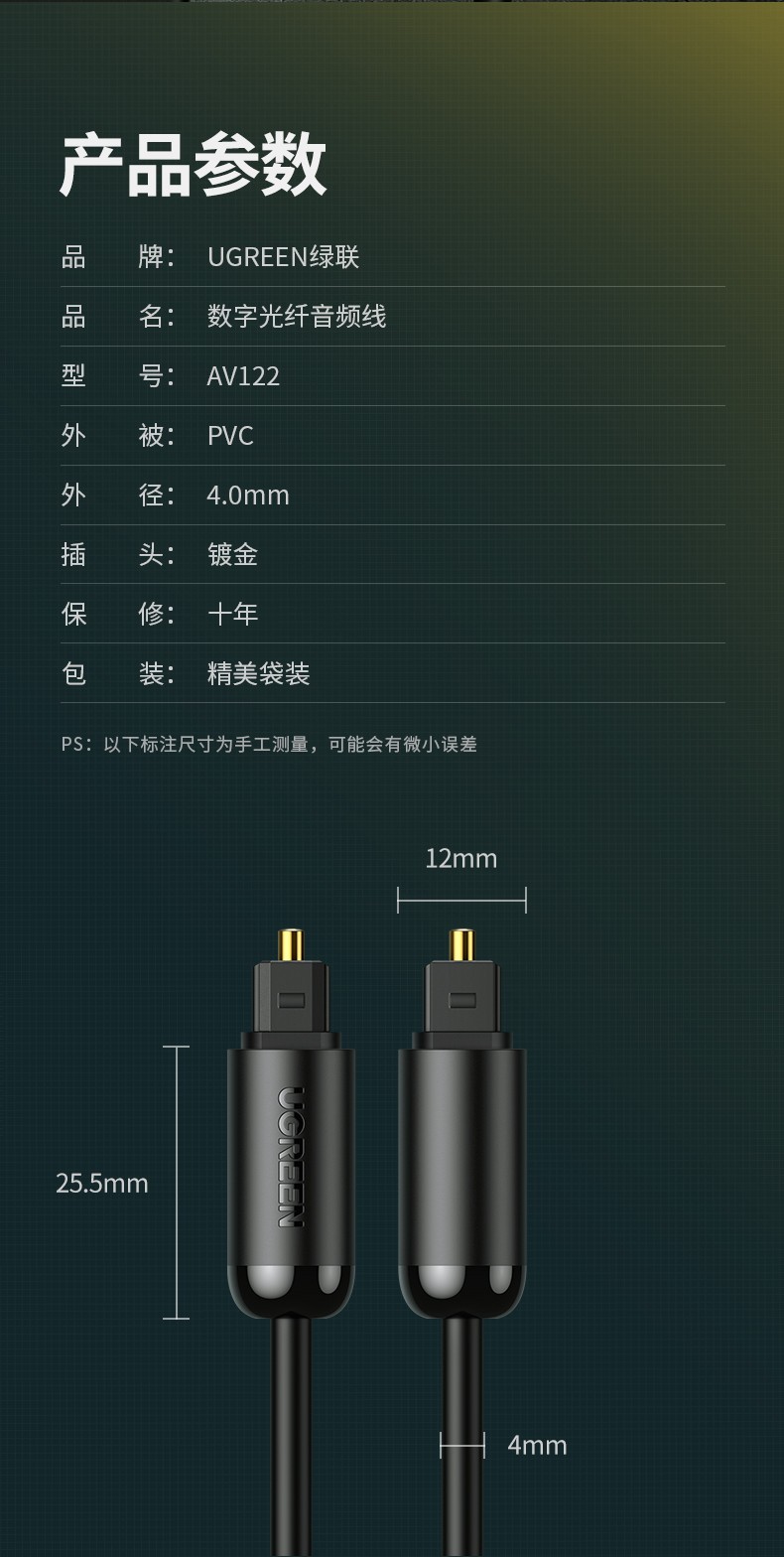 綠聯(lián) AV122 數(shù)碼/數(shù)字光纖音頻線 SPDIF輸出5.1聲道高保真 2米 灰色 單位:根