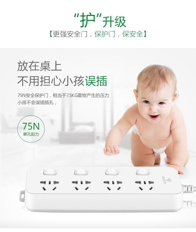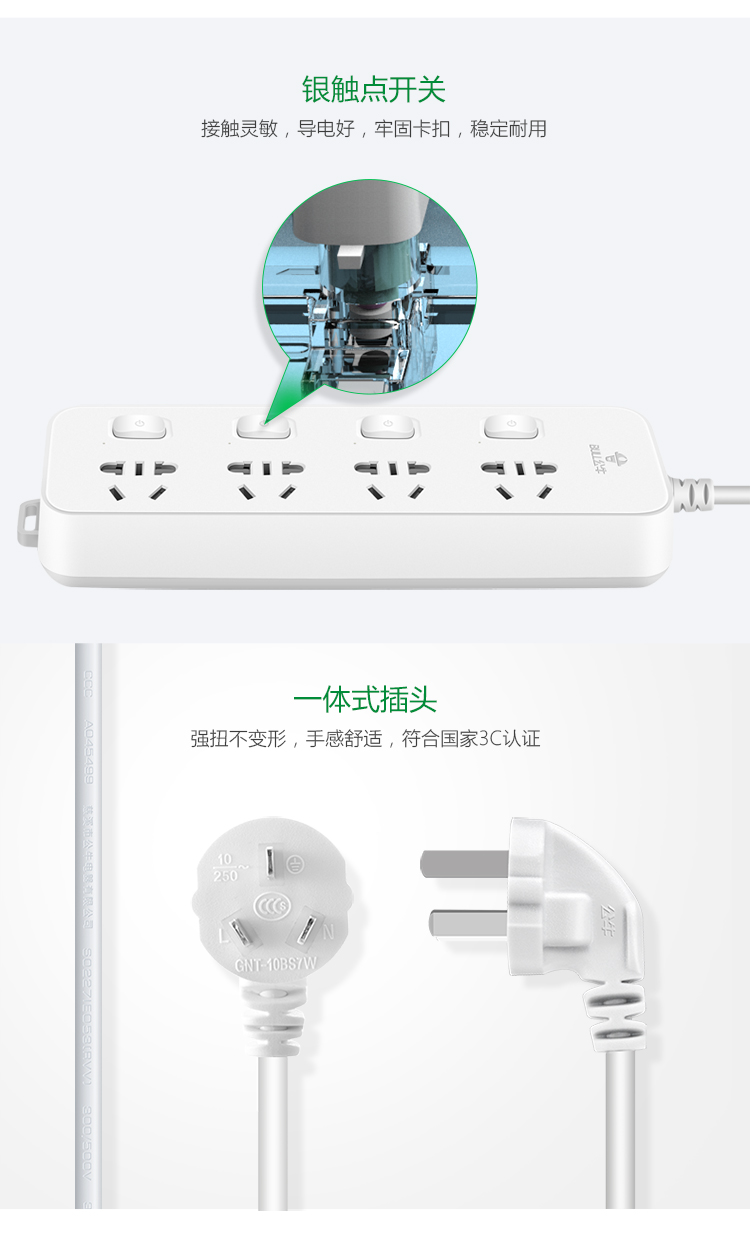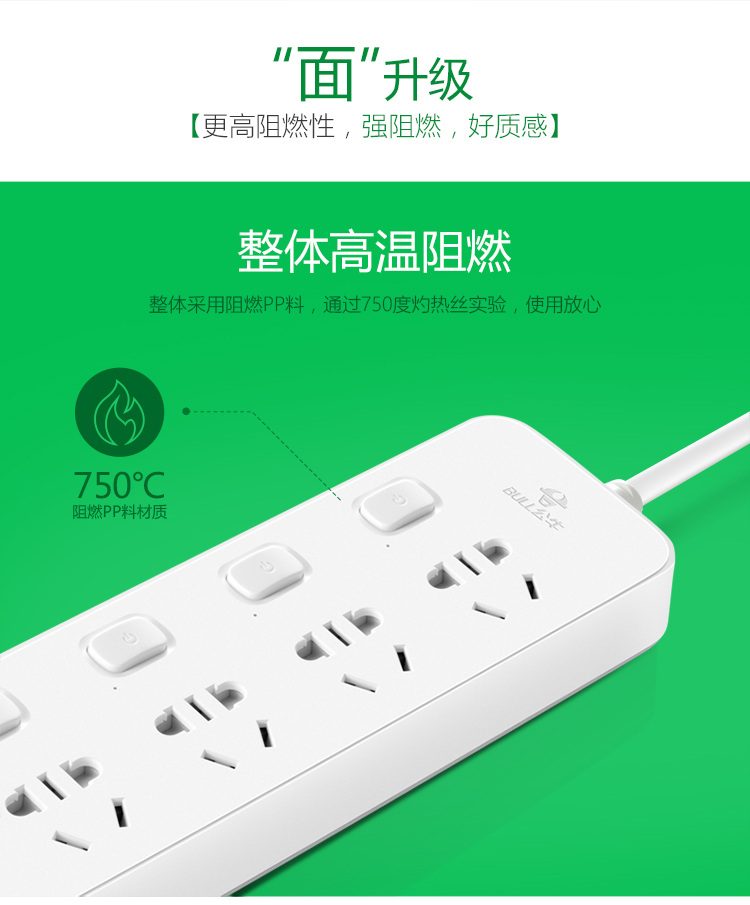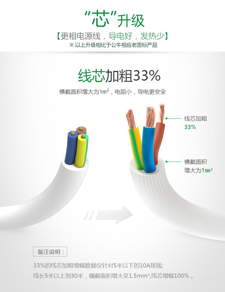 公牛插座 GN-B3043 3米4開4位新國標插座 單位:個