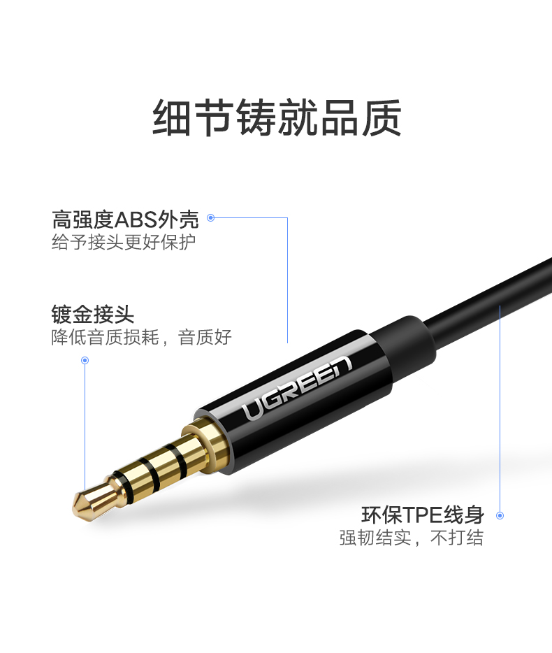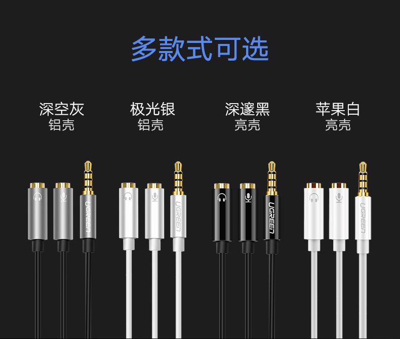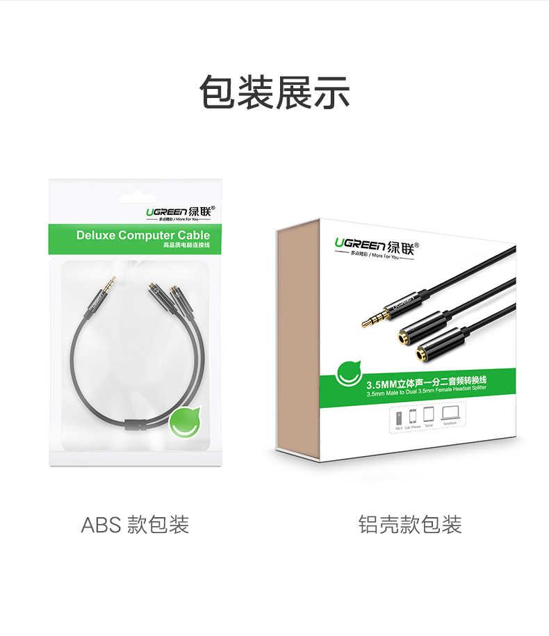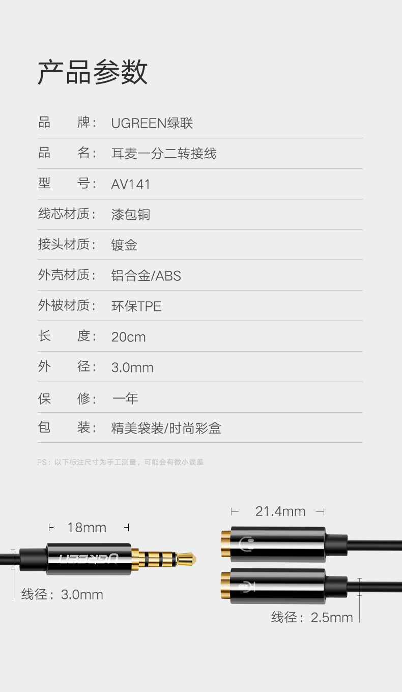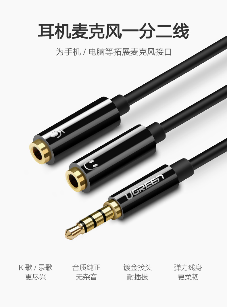 綠聯(lián) AV141 耳機(jī)麥克風(fēng)一分二轉(zhuǎn)接線3.5mm音頻線手機(jī)耳機(jī)二合一轉(zhuǎn)換器 膠殼 白色 單位:根