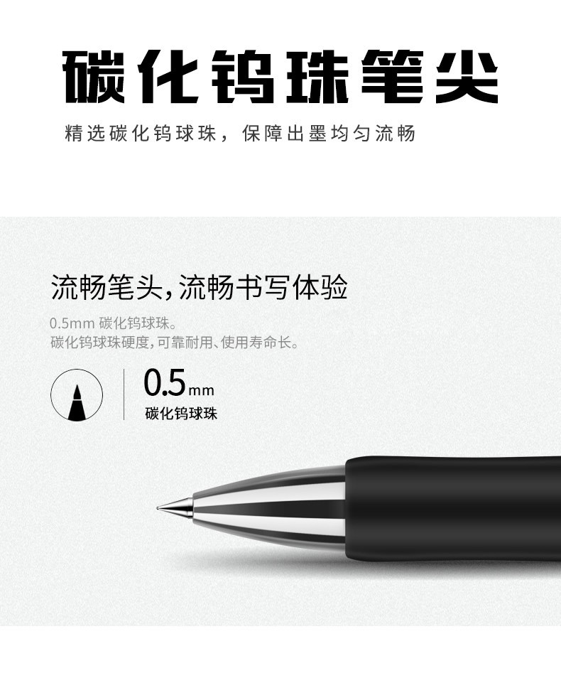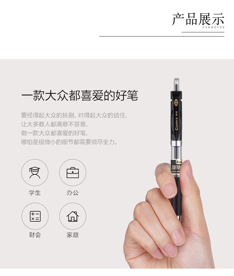齊心 K3511 0.5mm 按動(dòng)中性筆簽字筆 藍(lán)黑色 12支/盒