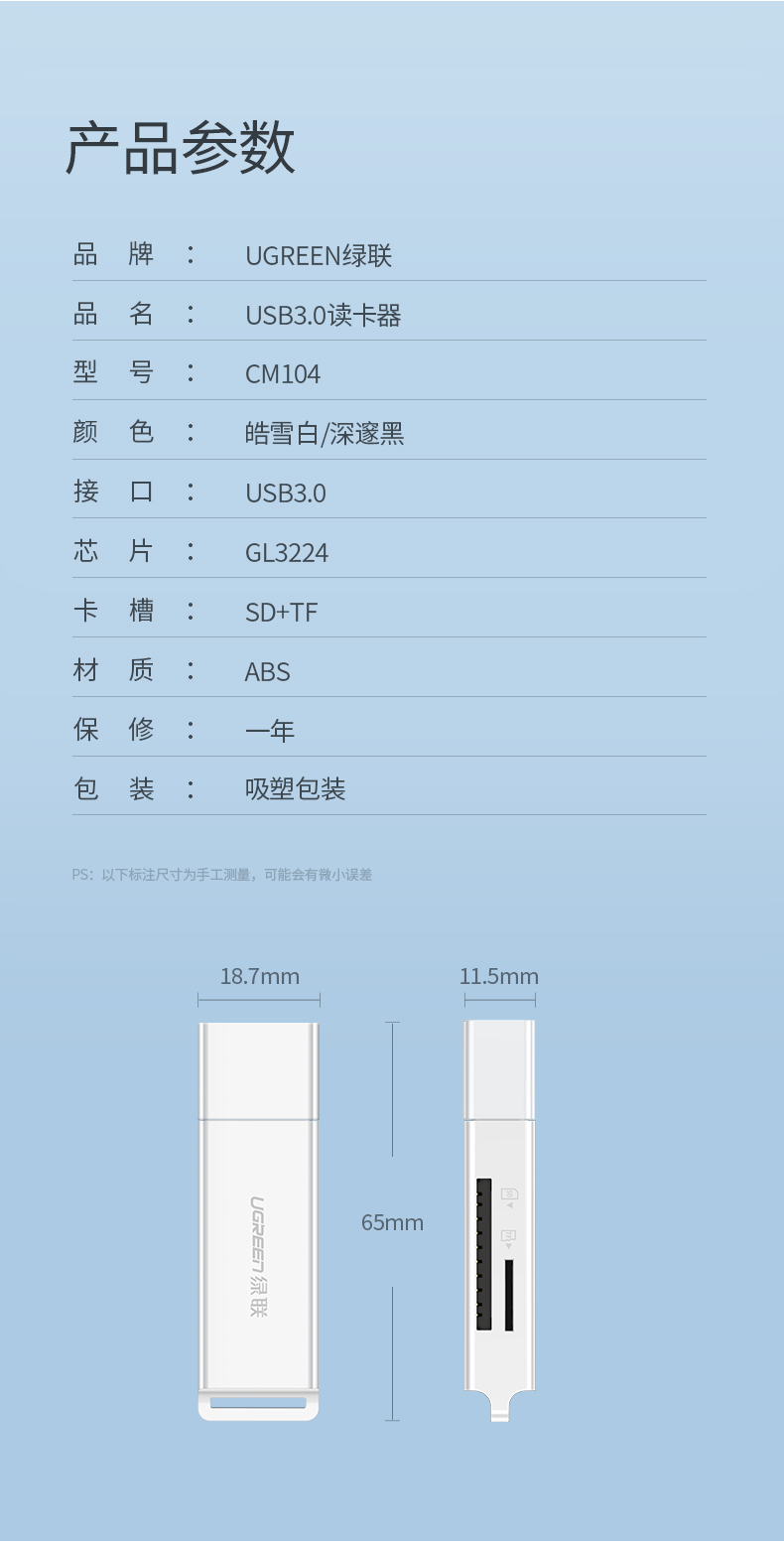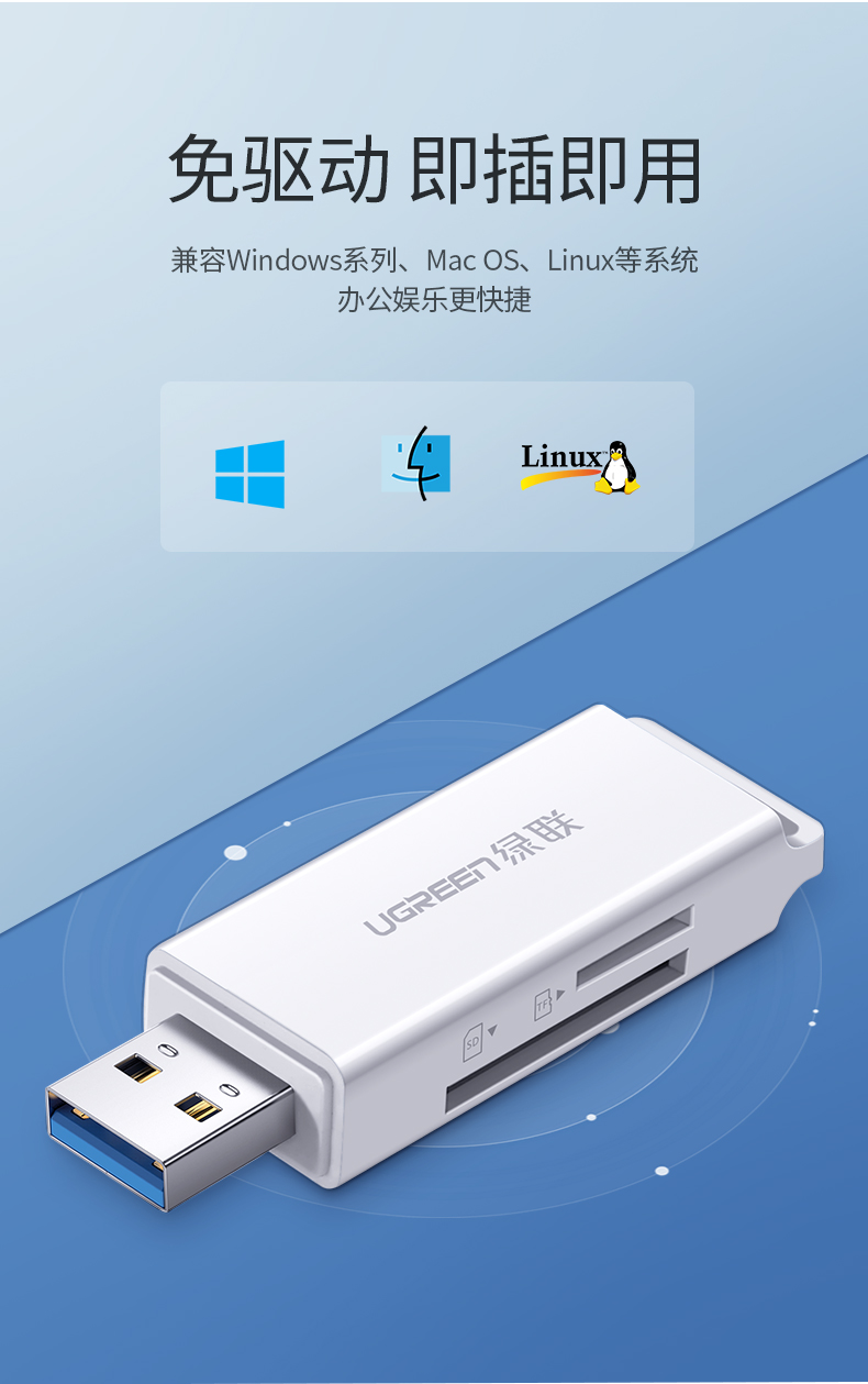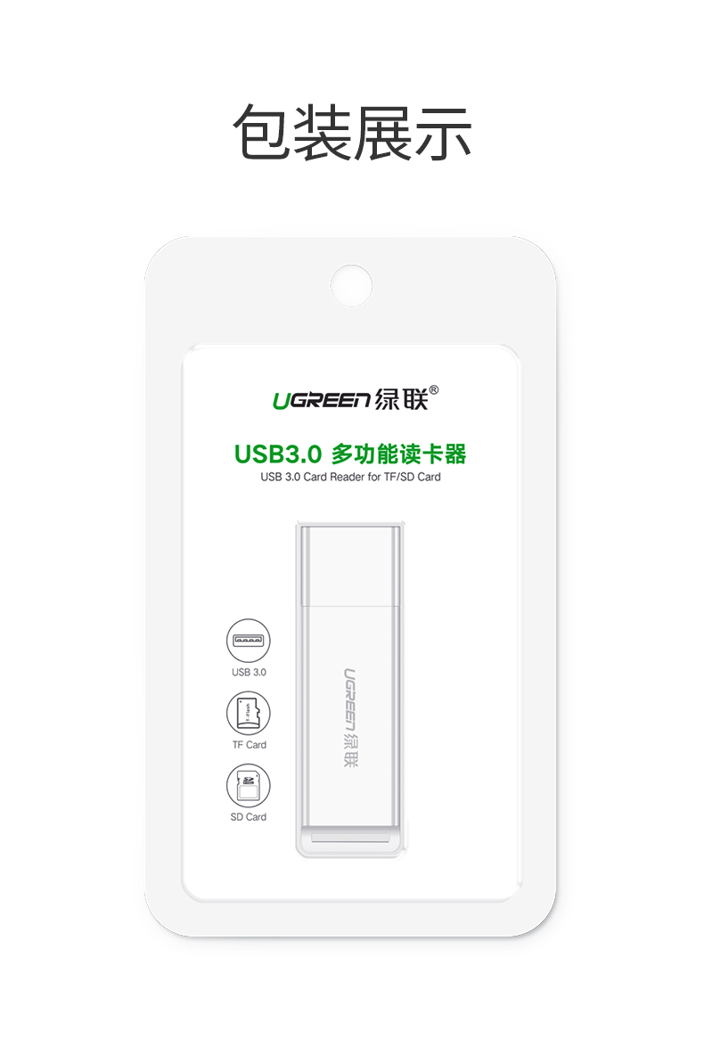 綠聯(lián)讀卡器 CM104 多功能二合一USB3.0高速讀取 白色 單位:個