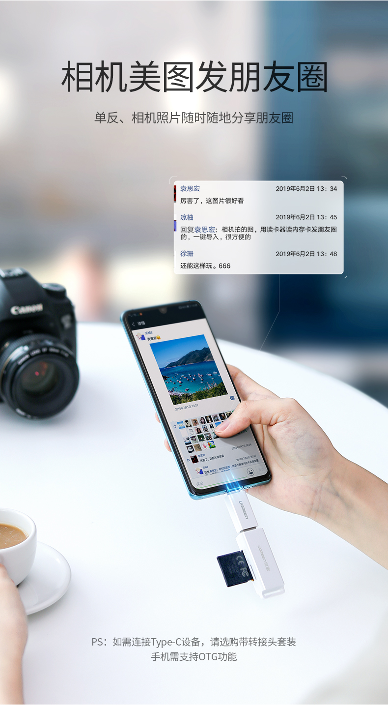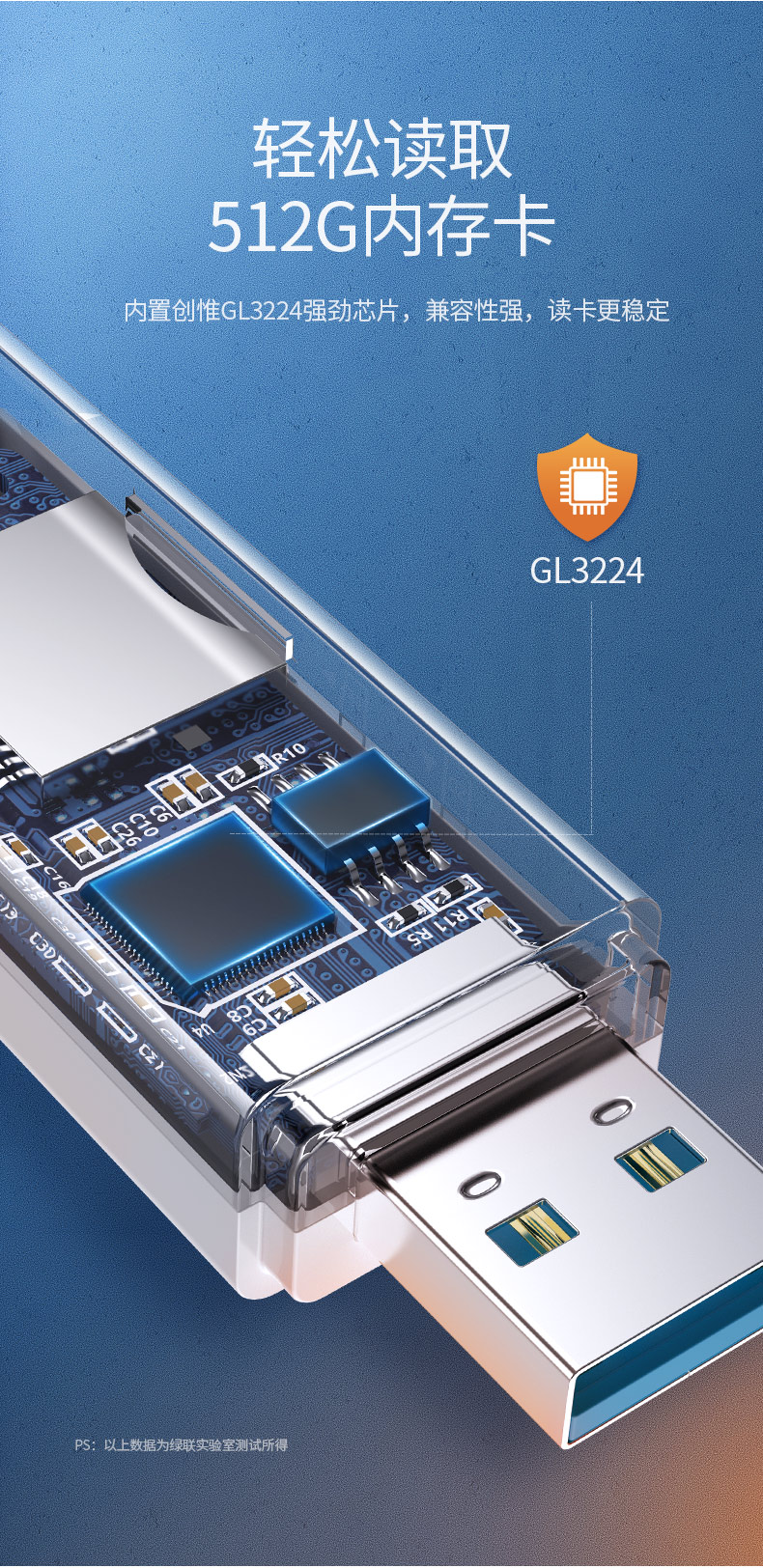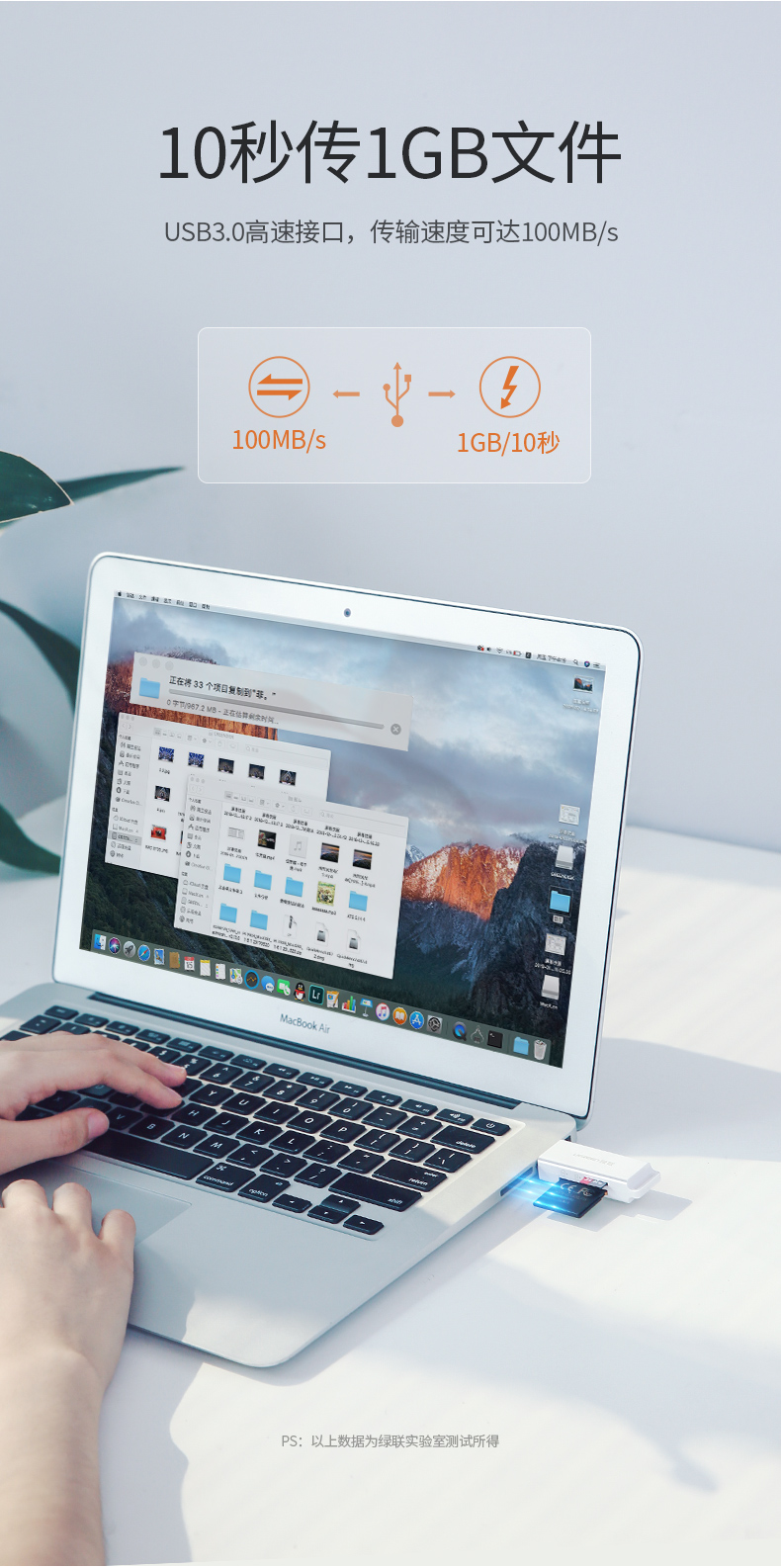綠聯(lián)讀卡器 CM104 多功能二合一USB3.0高速讀取 白色 單位:個