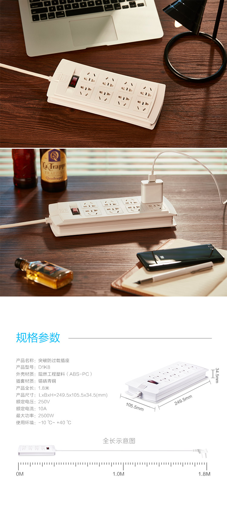 突破插座 D1K8 5米一開(kāi)8位插座 單位:個(gè)