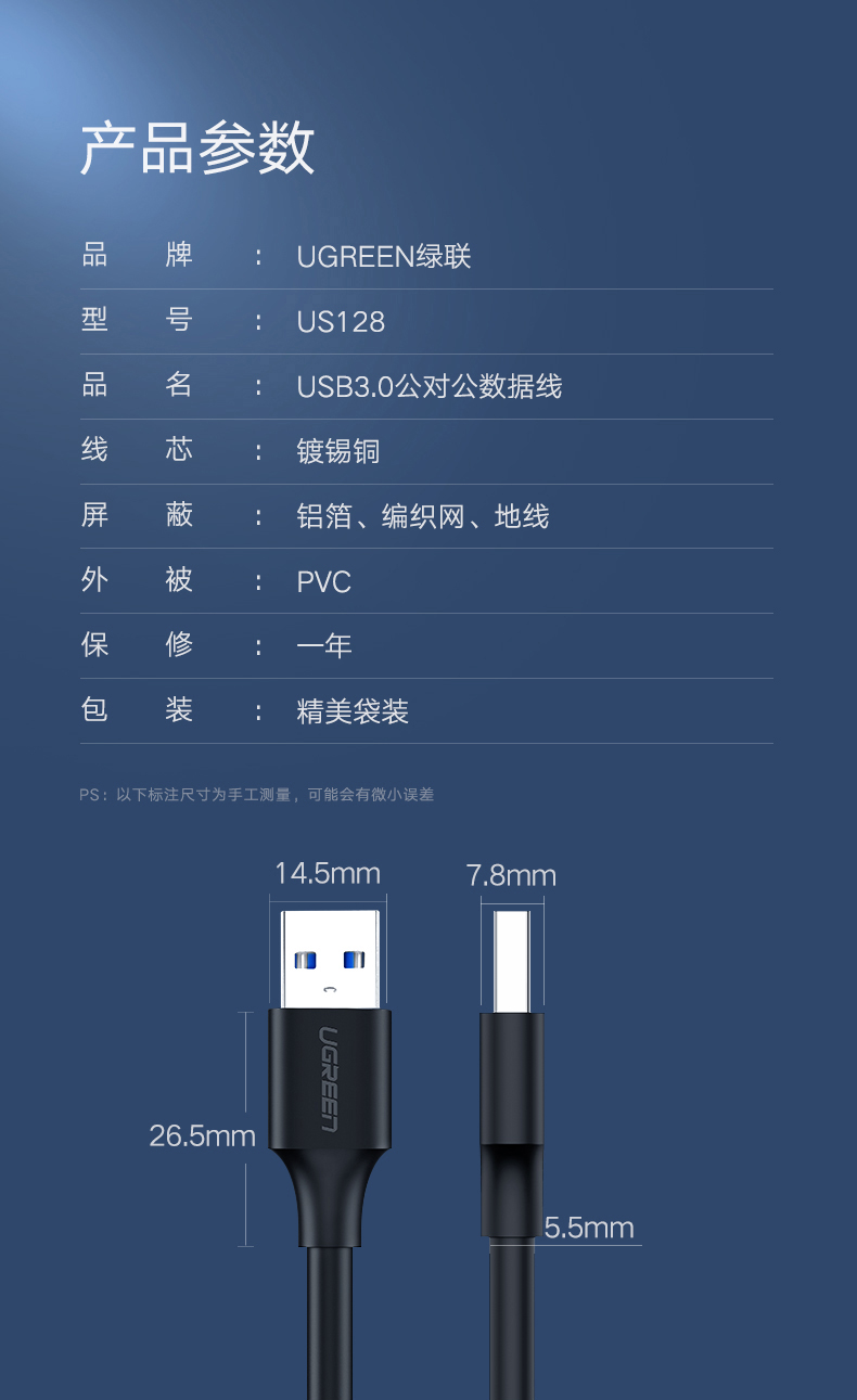 綠聯(lián) US128 USB3.0數(shù)據(jù)線公對(duì)公 2米 黑色 單位:根