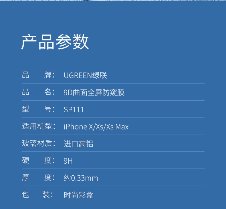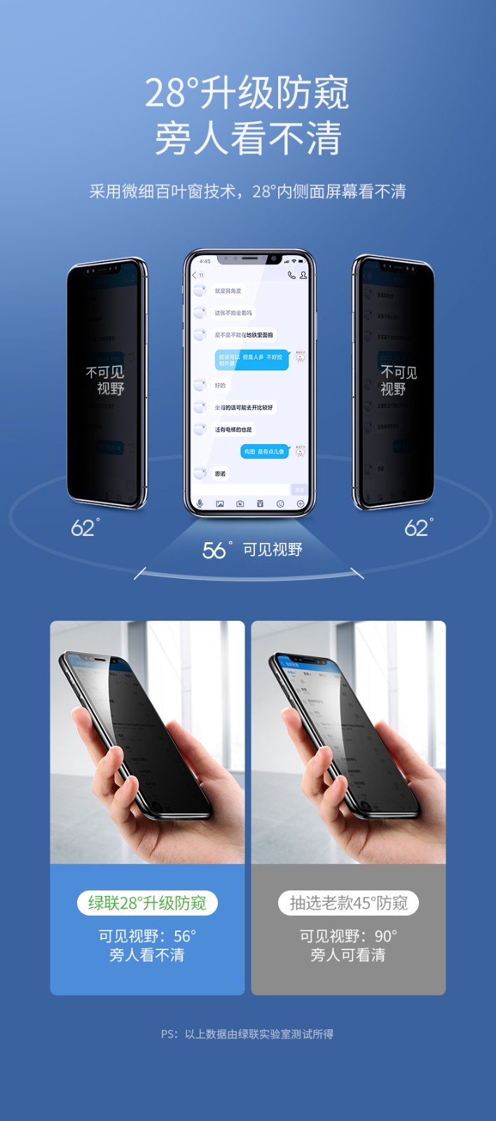 綠聯(lián) SP111 28°防窺膜 iphone xs MAX大弧邊 防窺鋼化膜 全覆蓋送貼膜工具 2片裝