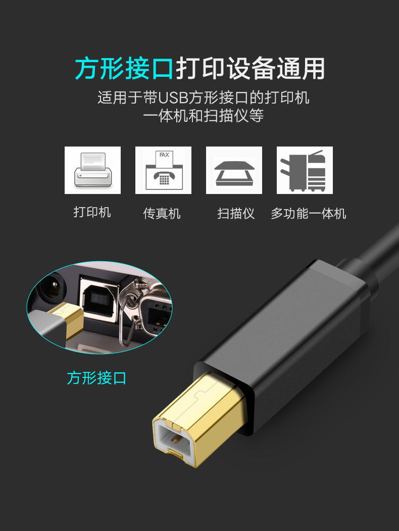 綠聯(lián) US135 USB2.0高速打印機(jī)數(shù)據(jù)線(xiàn)方口連接線(xiàn)鍍金接頭A公對(duì)B公AM/BM適用惠普HP佳能愛(ài)普生打印機(jī)生 1.5米 黑色 單個(gè)裝