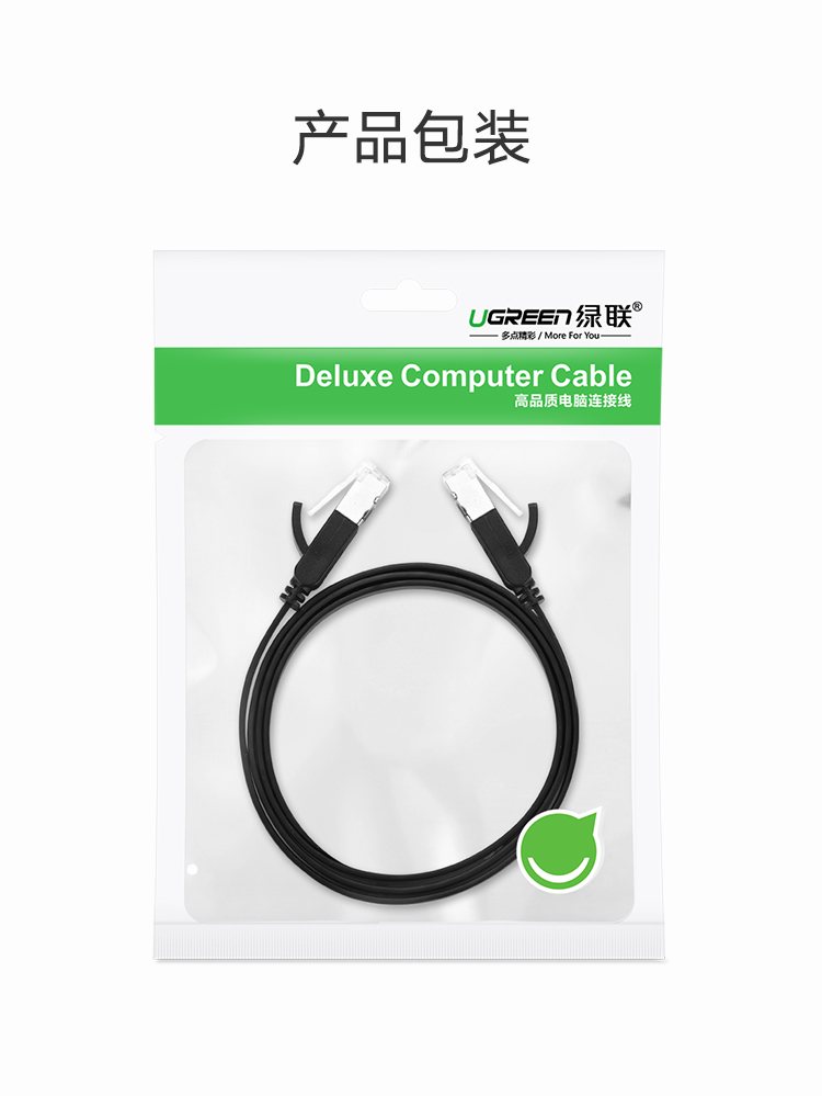 綠聯(lián) NW101 六類網(wǎng)線 純銅CAT6類千兆網(wǎng)絡(luò)連接線 電腦寬帶家用非屏蔽扁平跳線成品網(wǎng)線 扁線 5米 黑色 單個(gè)裝