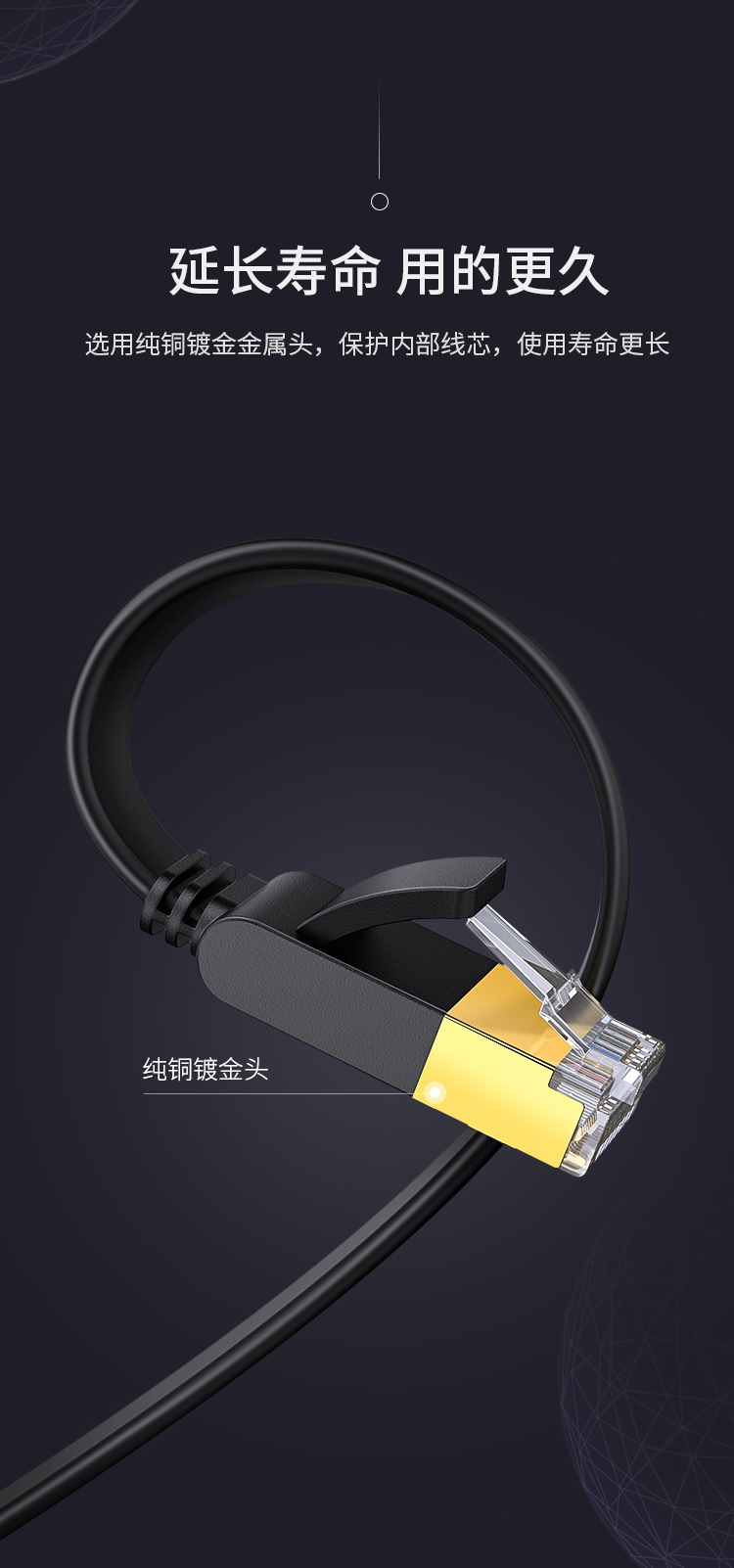 綠聯(lián) NW106 7類純銅扁平網(wǎng)線 Cat7七類屏蔽雙絞線 工程級萬兆網(wǎng)絡(luò)跳線 電腦寬帶家用成品扁線 3米 黑色 單個裝