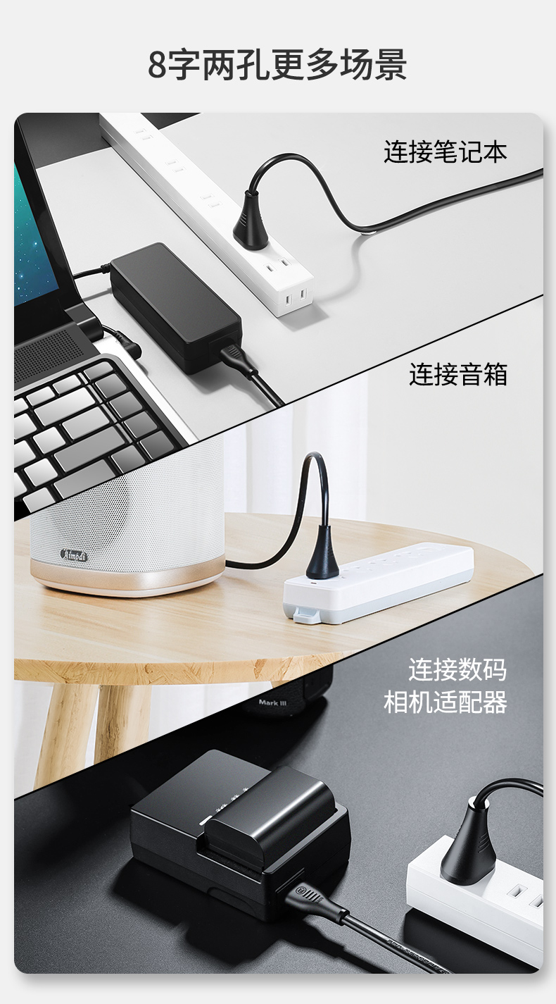 綠聯(lián) CD159 國標兩插8字電源連接線 八字尾雙孔 支持筆記本數(shù)碼相機臺燈音響箱打印機適配器 1米 黑色 單個裝