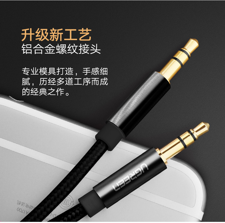 綠聯(lián) AV112 AUX車用音頻線 3.5mm 公對公立體聲耳機(jī)連接線 直對直 1米 黑色 單個裝