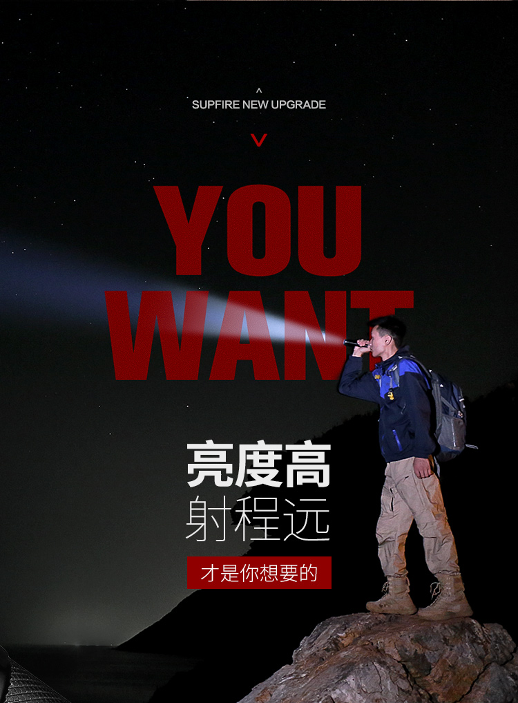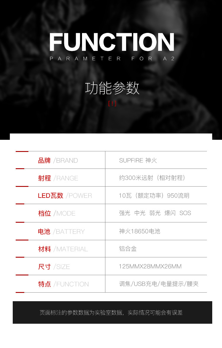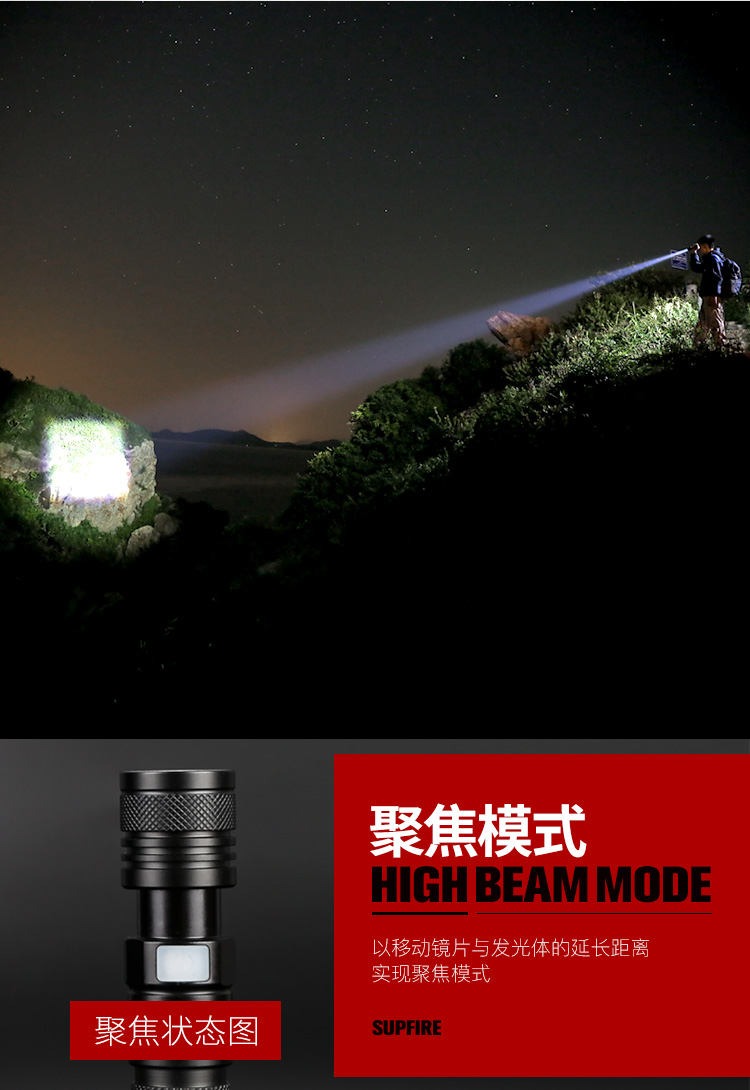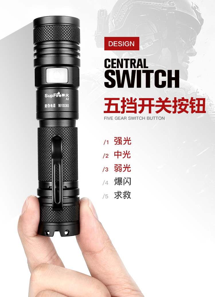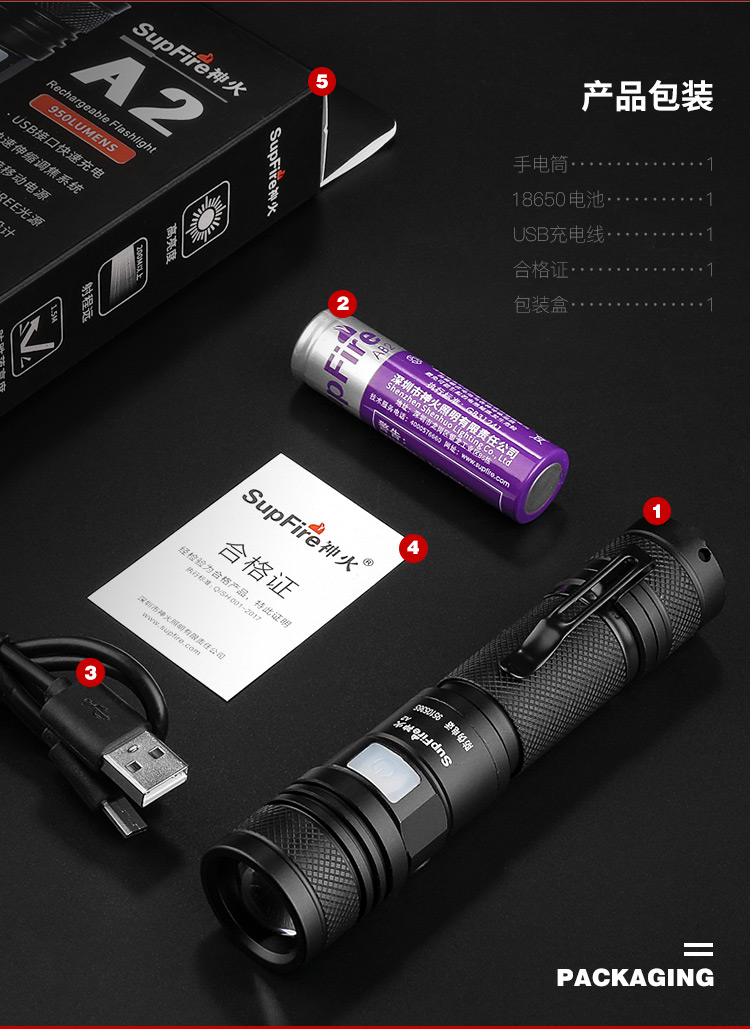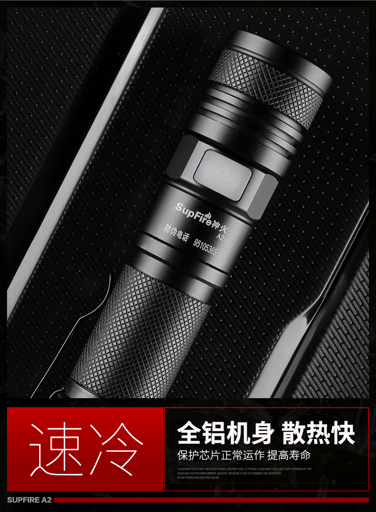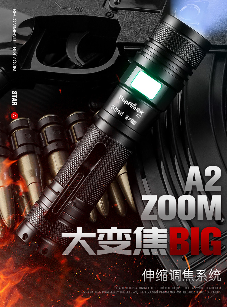 神火(supfire)A2升級(jí)版 強(qiáng)光手電筒可充電式LED遠(yuǎn)射型迷你變焦燈戶(hù)外家用10W