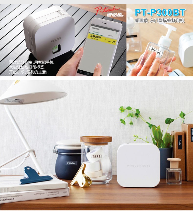 兄弟(brother)PT-P300BT 小白標(biāo)簽機(jī) 藍(lán)牙連接迷你便攜家用標(biāo)簽打印機(jī)條碼機(jī)緞帶打印機(jī)