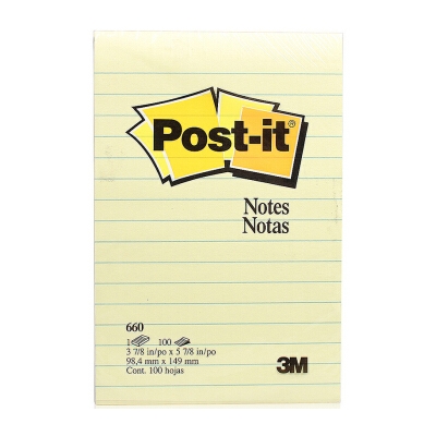 3M Post-it報(bào)事貼 660 報(bào)事貼單行簿 黃色橫線便條紙 告示貼 4*6 便簽本