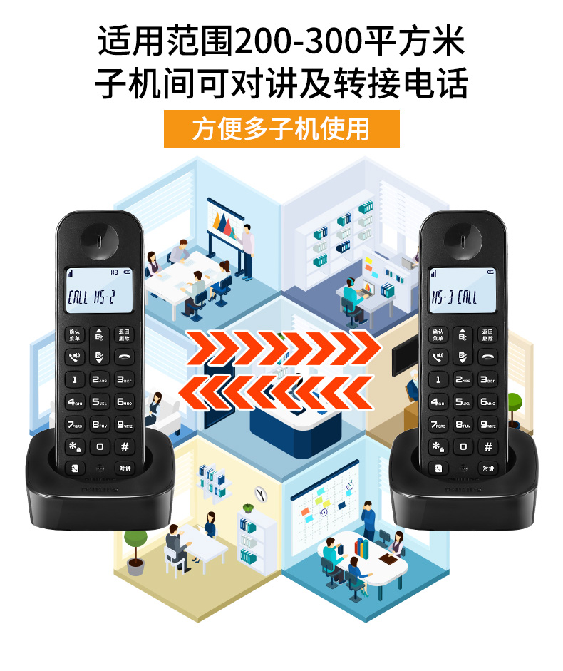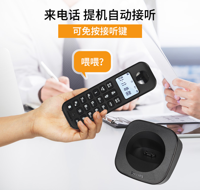飛利浦 DCTG160 數(shù)字無(wú)繩電話機(jī) 家用辦公中文老人用大音量無(wú)線固話座機(jī)子母機(jī) 單機(jī) 黑色