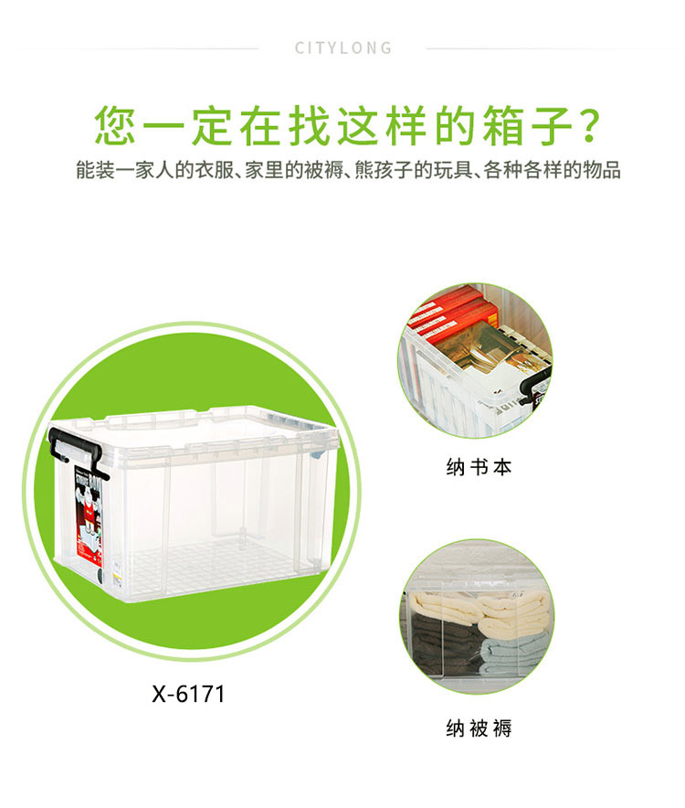 禧天龍Citylong 96L加大號高透可視收納箱加厚抗壓環(huán)保塑料儲物箱家用整理箱大力士系列 6171