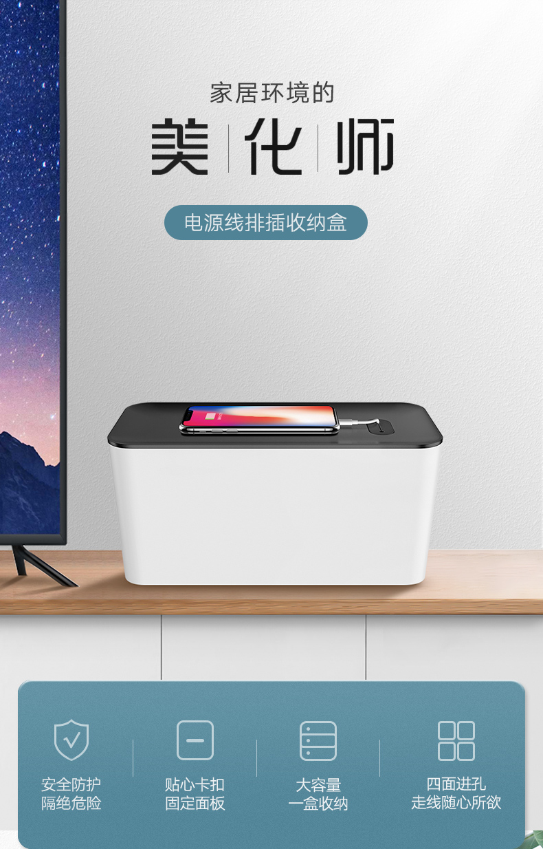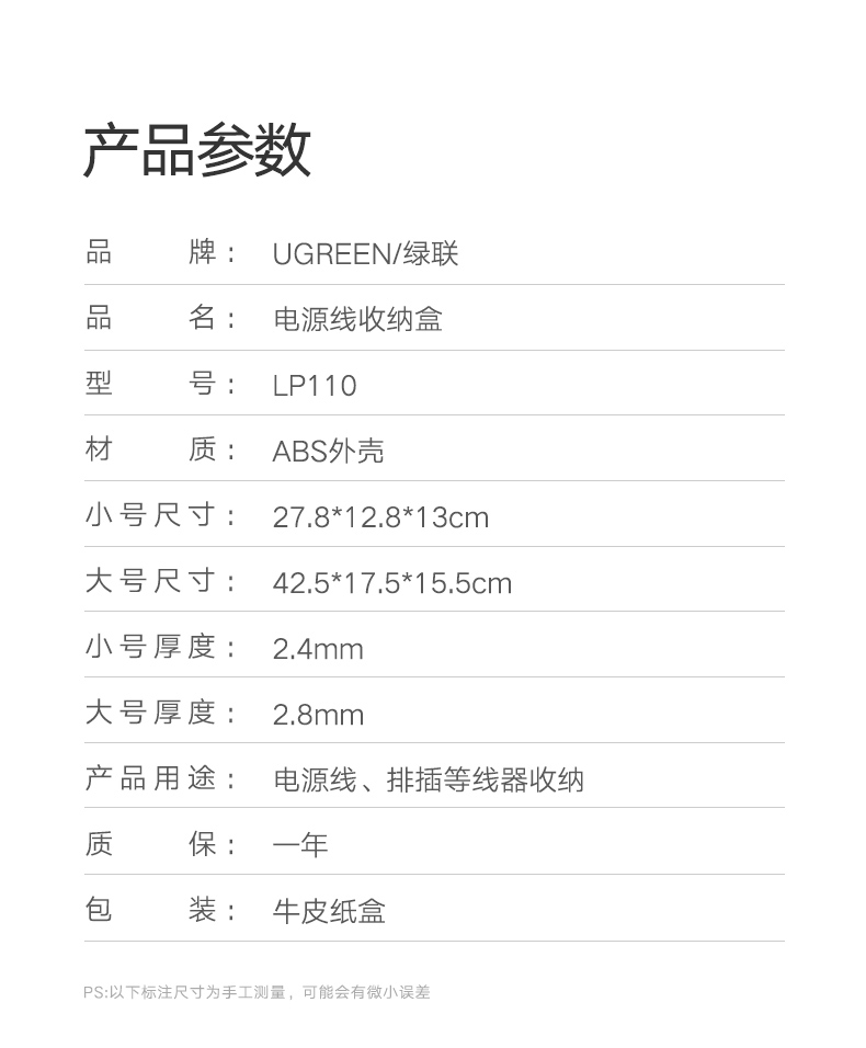 綠聯(lián) LP110 排插/電源線插座收納盒桌面筆記本電源線電線插座插線板拖線板網(wǎng)線集線整理盒理線器多功能防火防塵 大號(hào) 灰色 單個(gè)裝