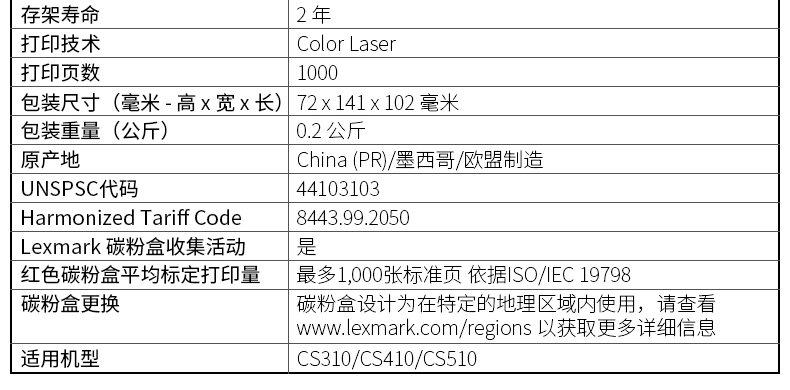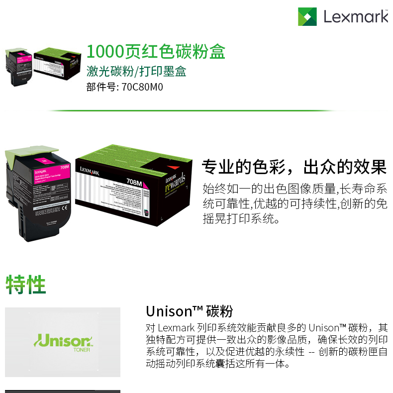 利盟 70C80M0 紅色粉盒 適用CS/310/410/510dn機型(約1000頁)
